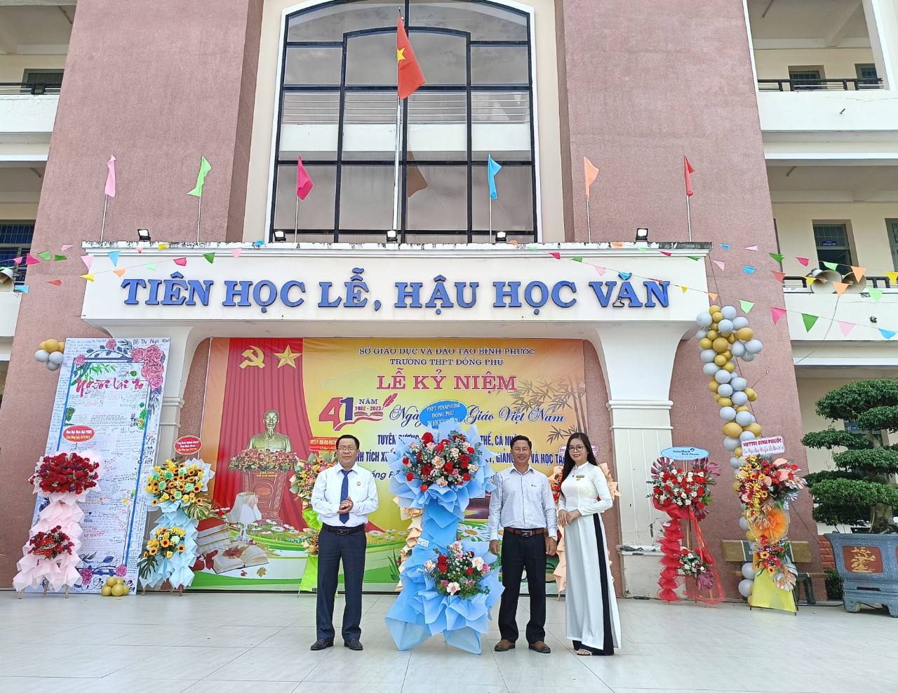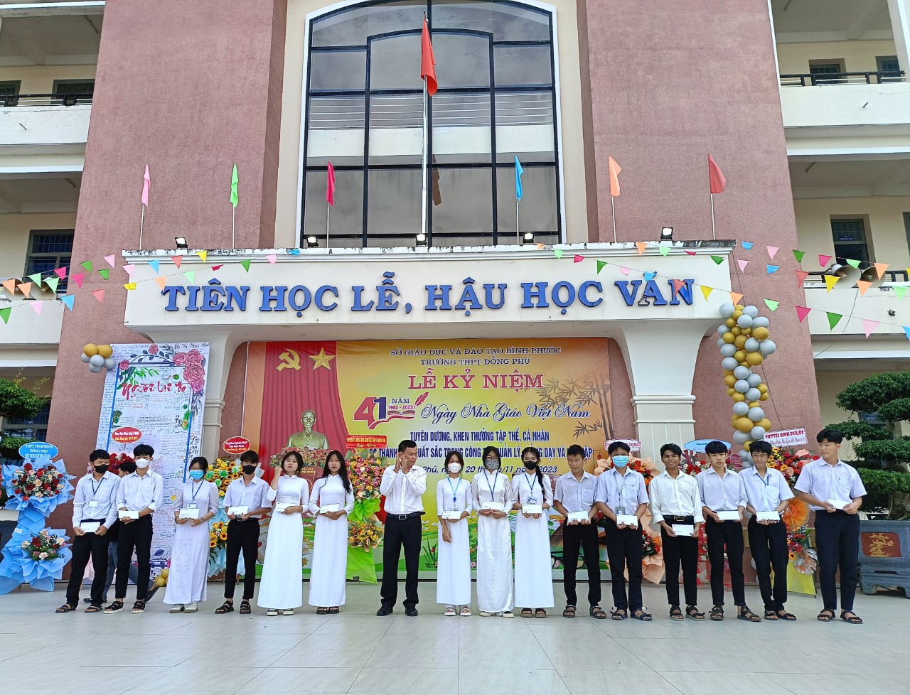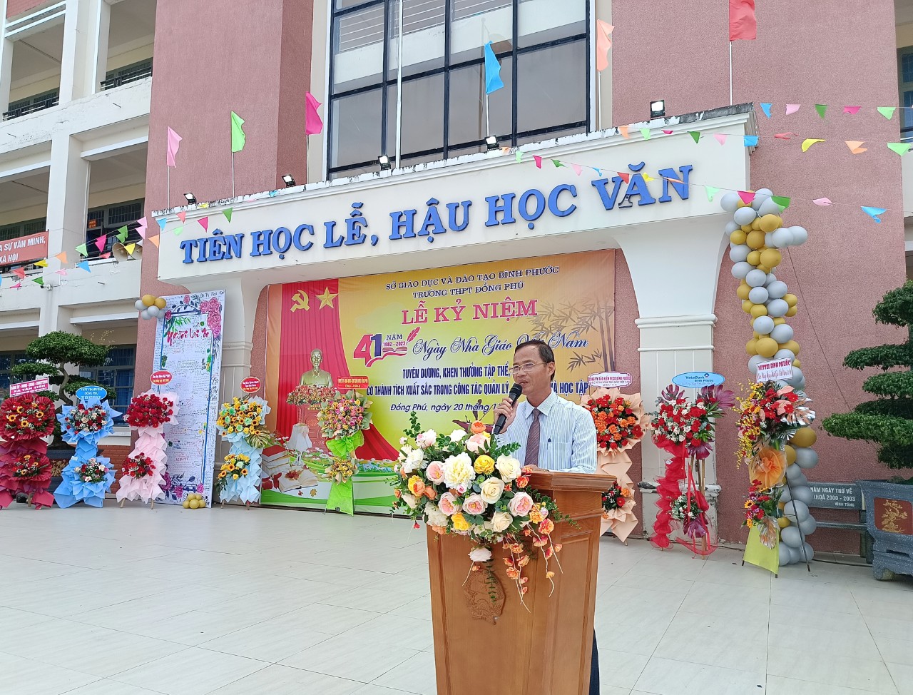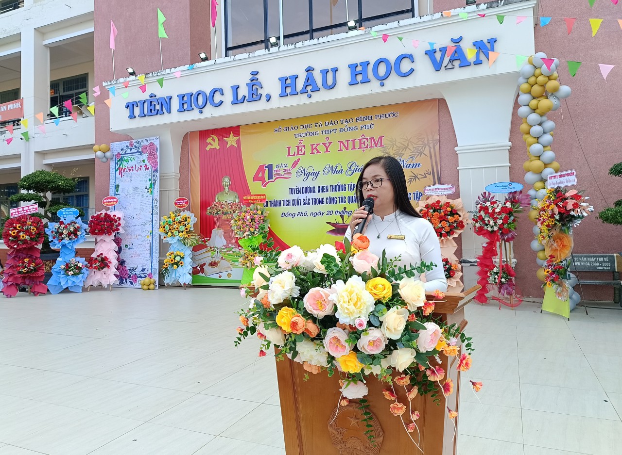 Trong không khí đầy phấn khởi và tự hào, Ban giám hiệu trường THPT Đồng Phú đã ôn lại truyền thống cao đẹp của nghề dạy học, nghề mà toàn xã hội tôn vinh là nghề cao quý nhất trong những nghề cao quý. Phát huy truyền thống đó, qua 24 năm xây dựng và phát triển, đội ngũ cán bộ, giáo viên của trường THPT Đồng Phú đã có nhiều đóng góp to lớn đối với sự nghiệp giáo dục. Từ một trường có xuất phát điểm thấp về quy mô và chất lượng, đến nay trường đã đã vươn lên nằm trong tốp 10 trường THPT có chất lượng giáo dục tốt của tỉnh. Riêng năm học 2022-2023, trường có 12 giáo dạy giỏi các cấp, 27 học sinh giỏi cấp tỉnh, 45 học sinh giỏi kỳ thi olympic 19/5.