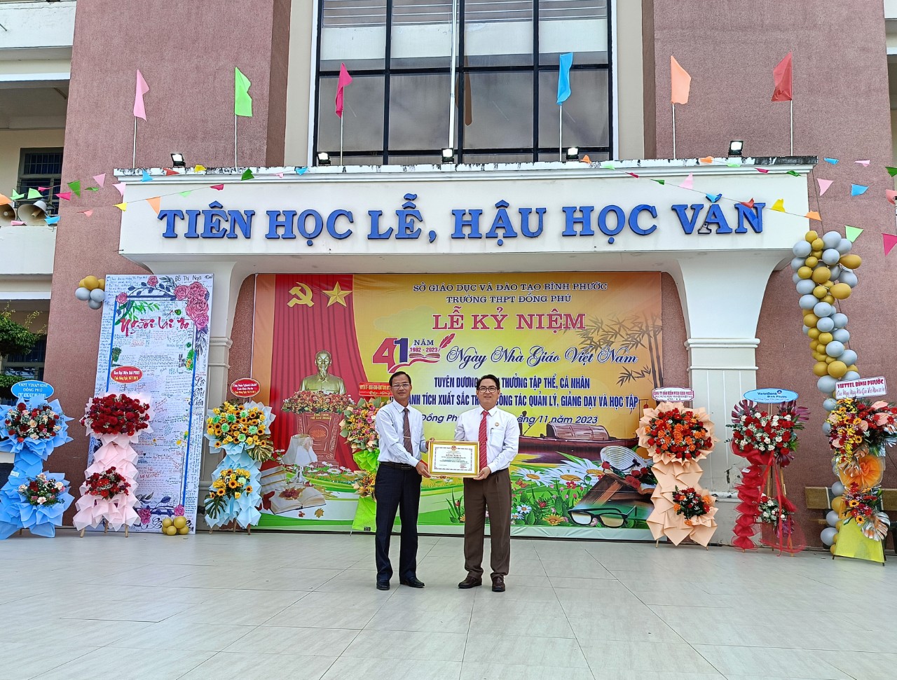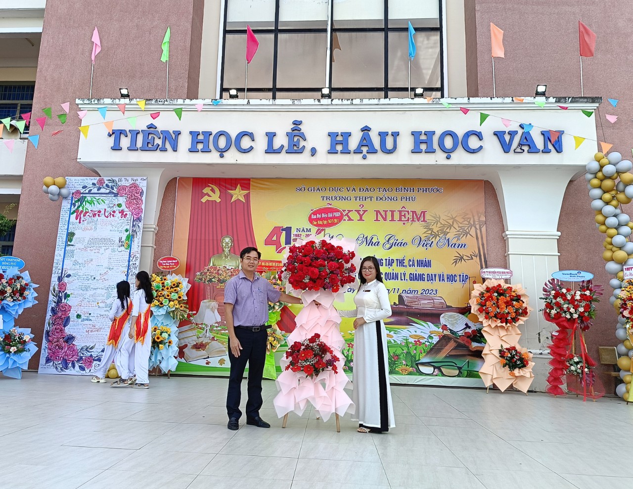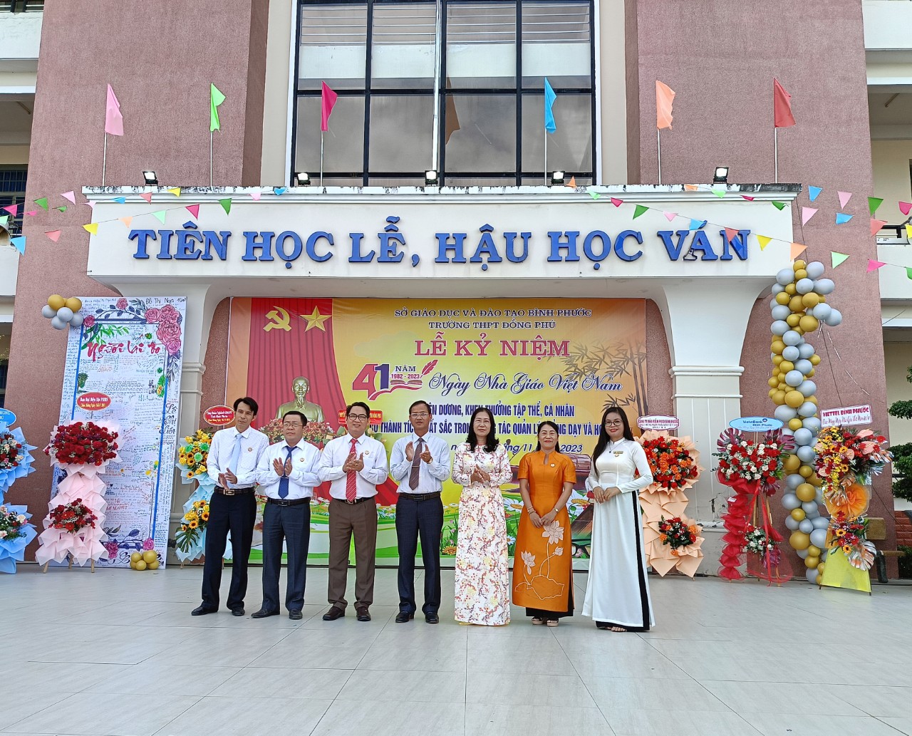 Trong không khí đầy phấn khởi và tự hào, Ban giám hiệu trường THPT Đồng Phú đã ôn lại truyền thống cao đẹp của nghề dạy học, nghề mà toàn xã hội tôn vinh là nghề cao quý nhất trong những nghề cao quý. Phát huy truyền thống đó, qua 24 năm xây dựng và phát triển, đội ngũ cán bộ, giáo viên của trường THPT Đồng Phú đã có nhiều đóng góp to lớn đối với sự nghiệp giáo dục. Từ một trường có xuất phát điểm thấp về quy mô và chất lượng, đến nay trường đã đã vươn lên nằm trong tốp 10 trường THPT có chất lượng giáo dục tốt của tỉnh. Riêng năm học 2022-2023, trường có 12 giáo dạy giỏi các cấp, 27 học sinh giỏi cấp tỉnh, 45 học sinh giỏi kỳ thi olympic 19/5.