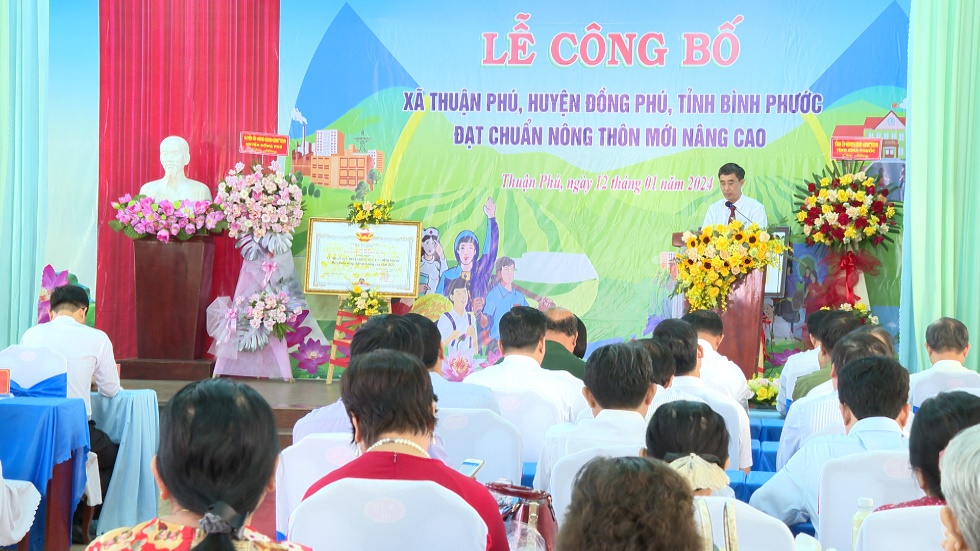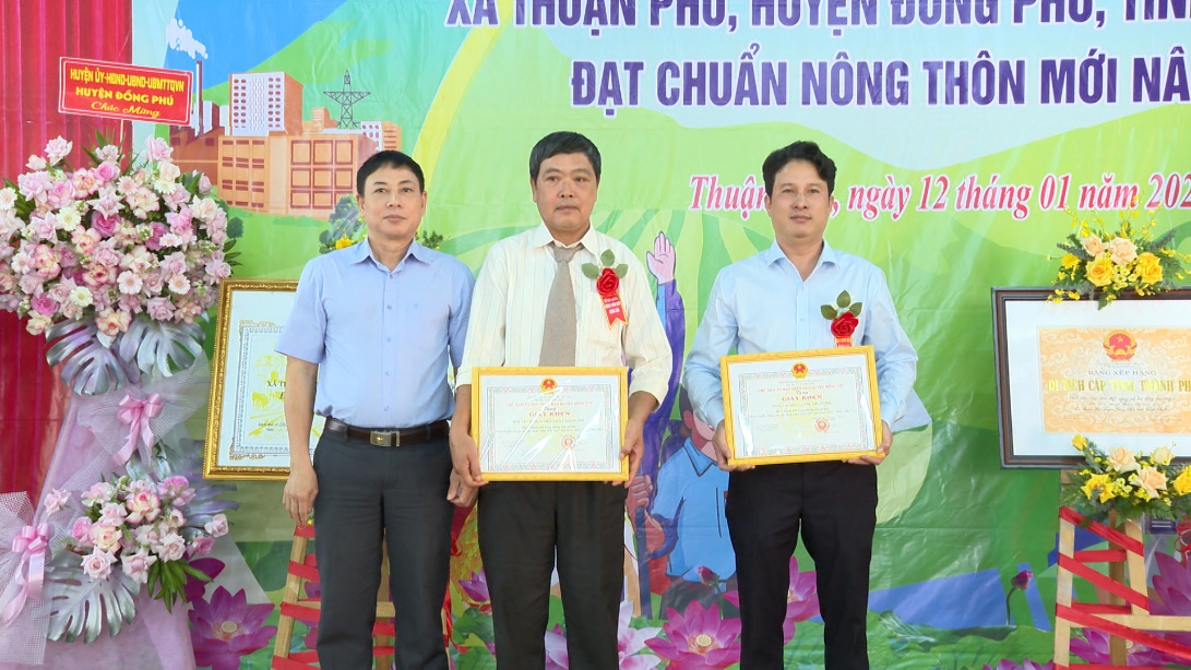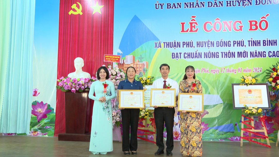 Tại buổi lễ, thừa uỷ quyền chủ tịch UBND tỉnh, bà Bùi Thị Minh Thuý, Tỉnh uỷ viên, Giám đốc Sở Khoa học và Công nghệ đã trao bằng công nhận xã Thuận Phú đạt chuẩn NTM nâng cao năm 2022.