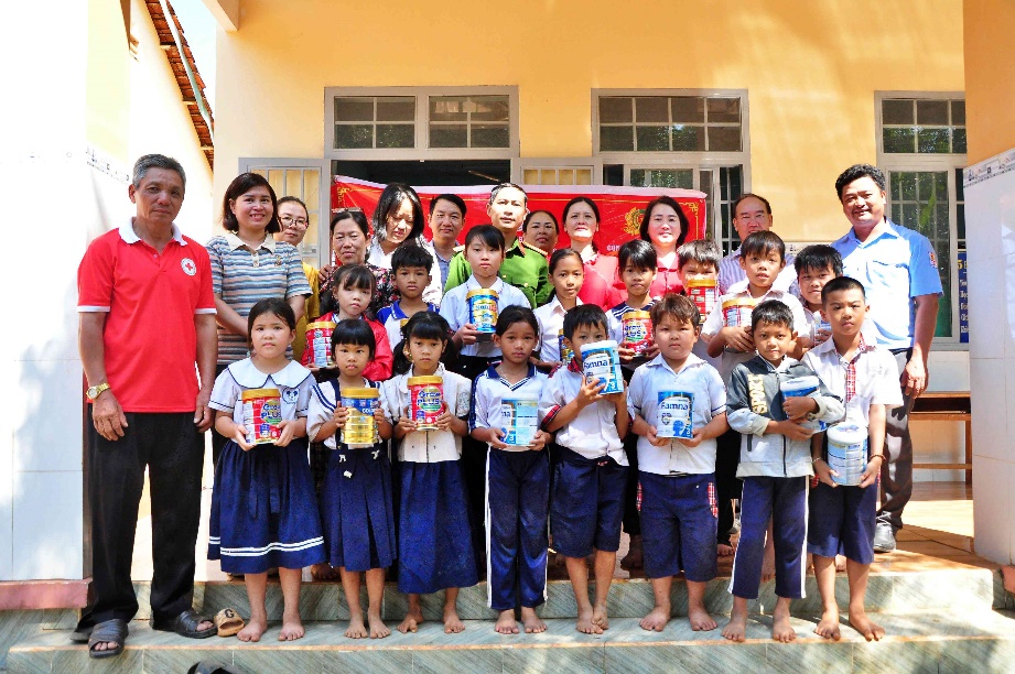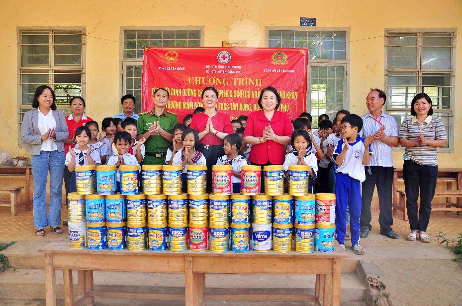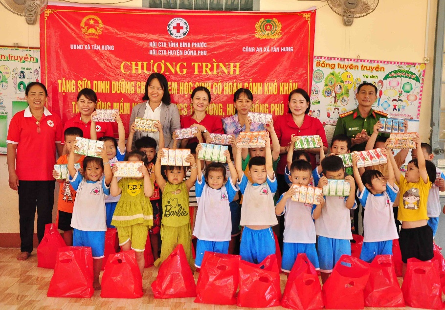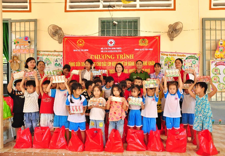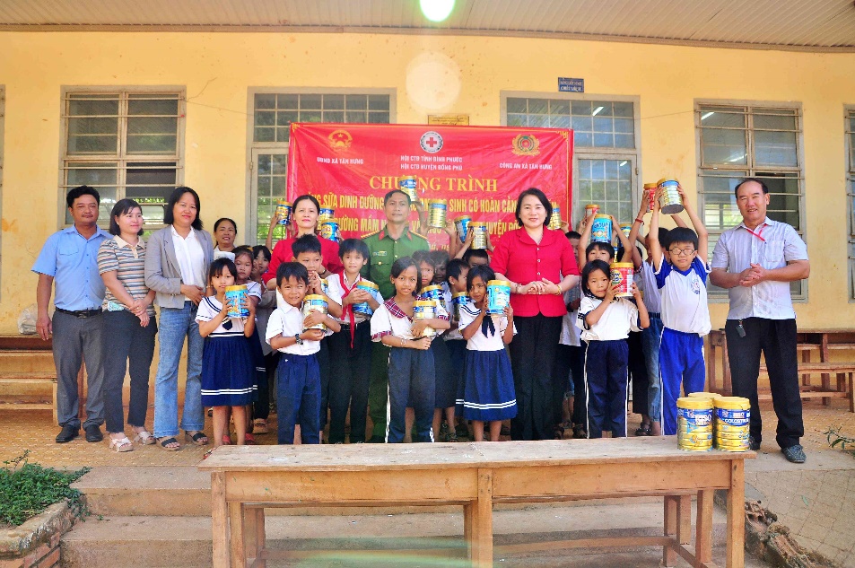Sáng 21-3, Hội chữ thập đỏ tỉnh Bình Phước phối hợp với Hội chữ thập đỏ huyện Đồng Phú, chính quyền và Công an xã Tân Hưng tổ chức chương trình tặng sữa cho học sinh có hoàn cảnh khó khăn trên địa bàn.