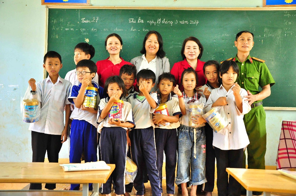 Đoàn tặng sữa cho học sinh tại điểm trường ấp Pa Pếch
