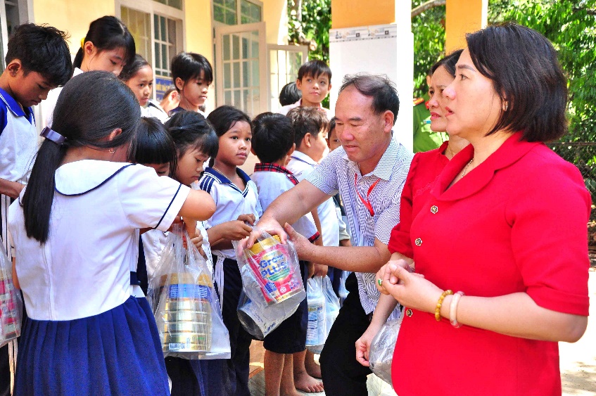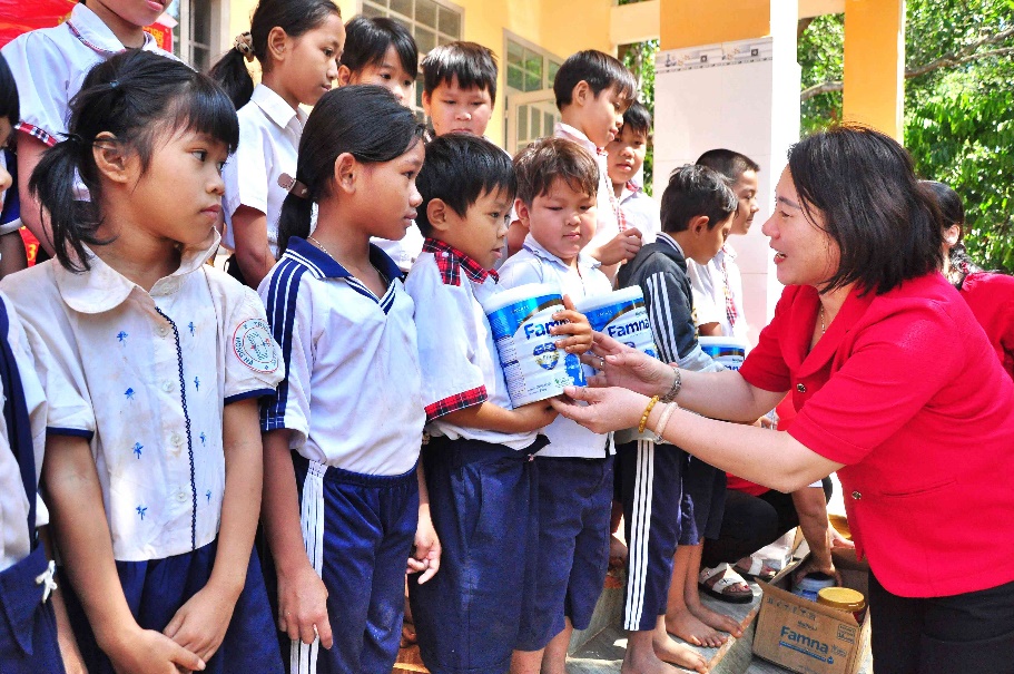Ngoài ra, đoàn còn tặng 162 phần sữa tươi cho các trẻ khó khăn của Trường mầm non Tân Hưng. Các phần sữa có tổng trị giá trên 55 triệu đồng, do Công ty cổ phần thực phẩm dinh dưỡng NutiFood tài trợ.