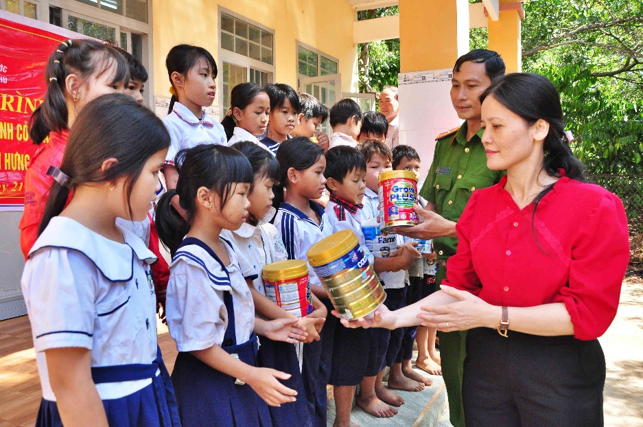 Đoàn đã tặng 94 phần sữa bột cho học sinh có hoàn cảnh khó khăn của Trường Tiểu học và THCS Tân Hưng, trong đó 54 phần tặng học sinh điểm trường ấp Suối Nhung và điểm trường ấp Pa Pếch, đây là 2 điểm trường vùng sâu, vùng xa, có đông học sinh đồng bào dân tộc thiểu số theo học.