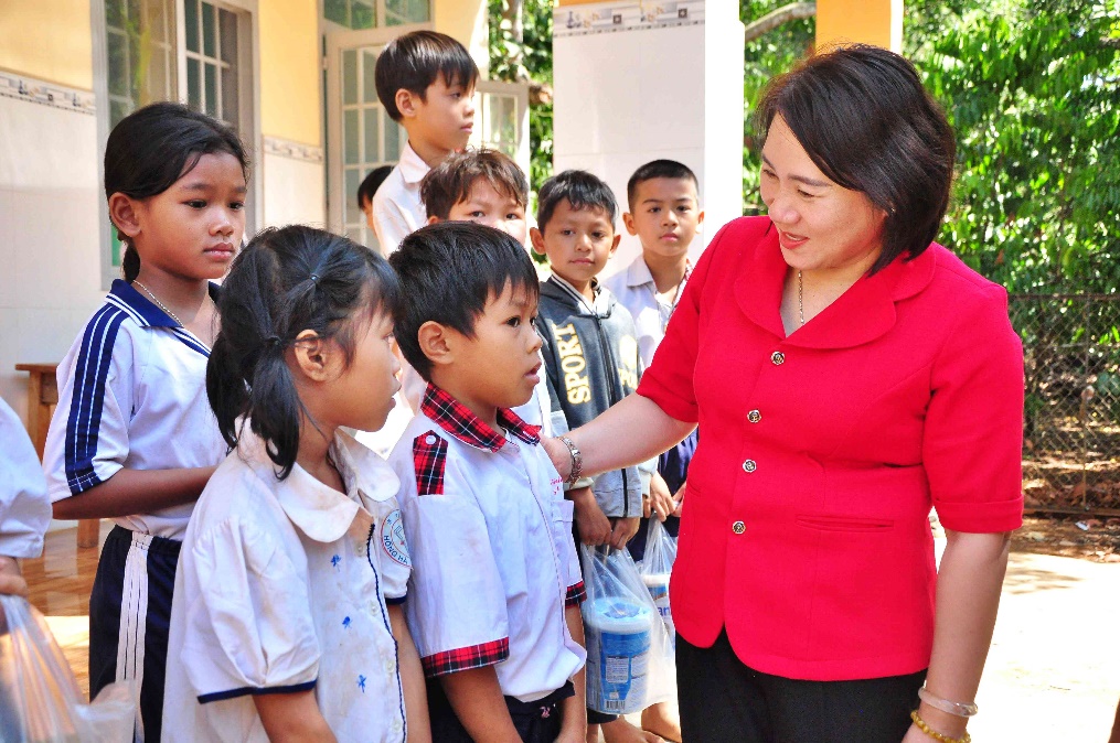 Phó chủ tịch Hội Chữ thập đỏ tỉnh Nguyễn Thị Hằng Nga động viên các em học sinh cố gắng vượt khó học tốt