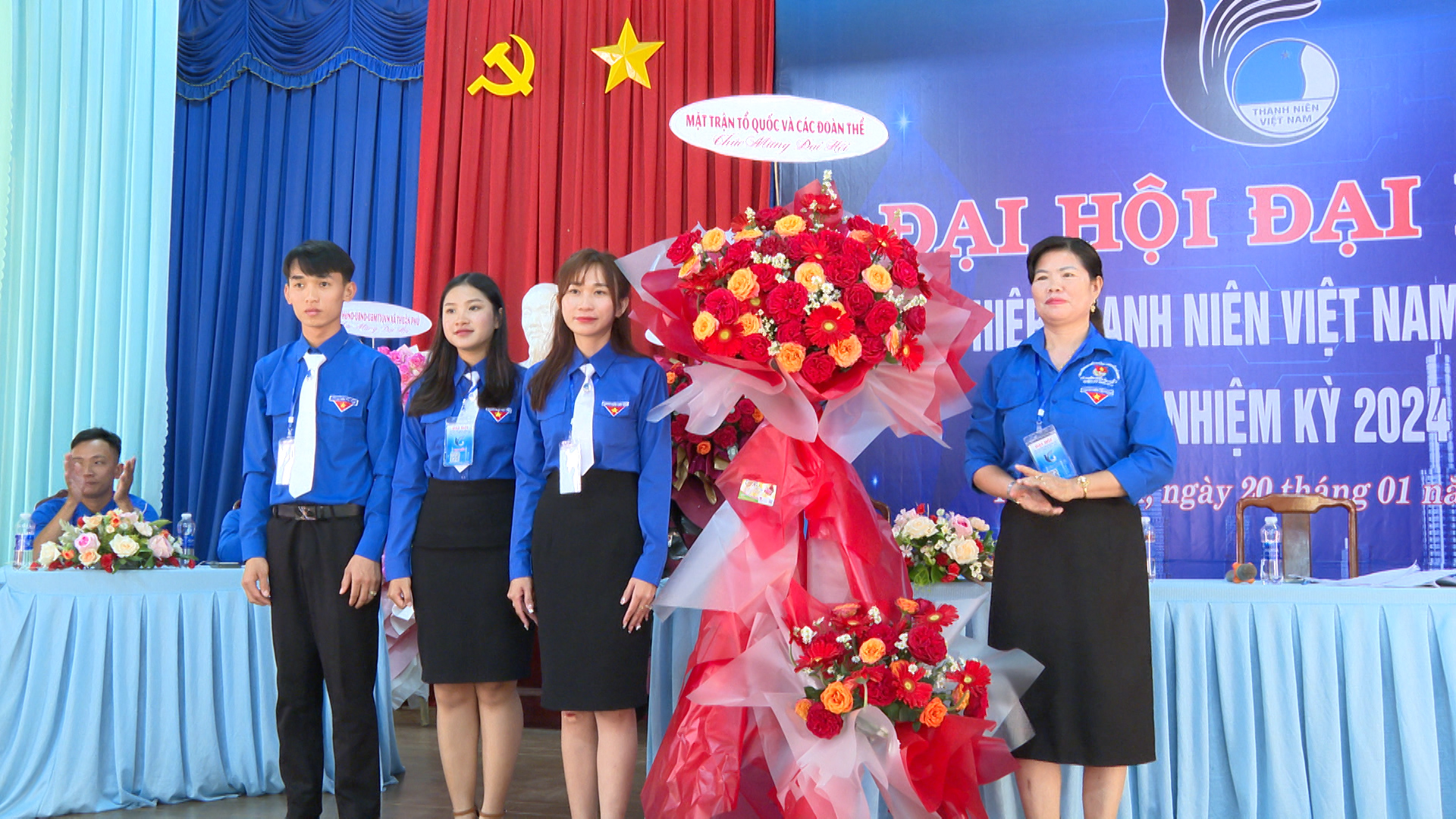 Bí thư Huyện đoàn, chủ tịch Hội LHTN huyện Vương Ngọc Toại phát biểu chỉ đạo đại hội và tặng hoa chúc mừng đại hội