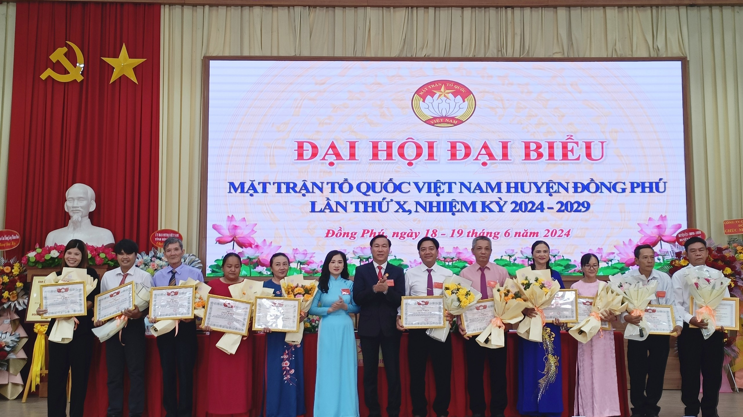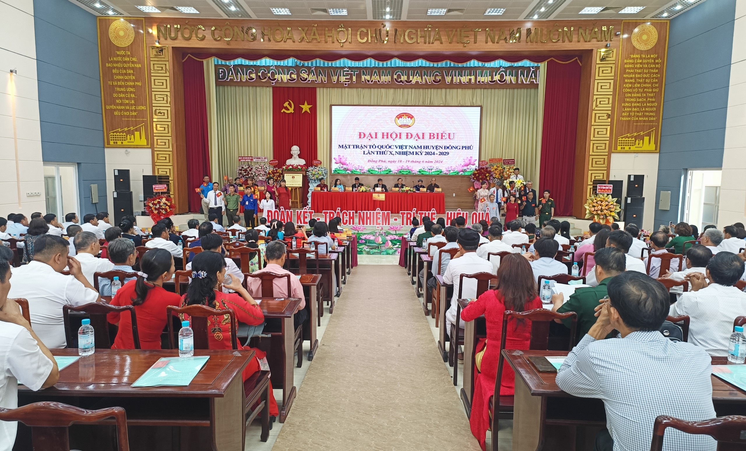 Với phương châm “Đoàn kết - Dân chủ - Đổi mới - Phát triển”, Đại hội đã bầu 50 ủy viên Ủy ban MTTQ Việt Nam huyện, hiệp thương cử đoàn đại biểu tham dự Đại hội đại biểu MTTQ Việt Nam tỉnh Bình Phước lần thứ X, nhiệm kỳ 2024 – 2029 gồm 17 đại biểu. Ông Nguyễn Hữu Hùng được bầu là Chủ tịch Uỷ ban MTTQ Việt Nam huyện Đồng Phú lần thứ X, nhiệm kỳ 2024-2029.