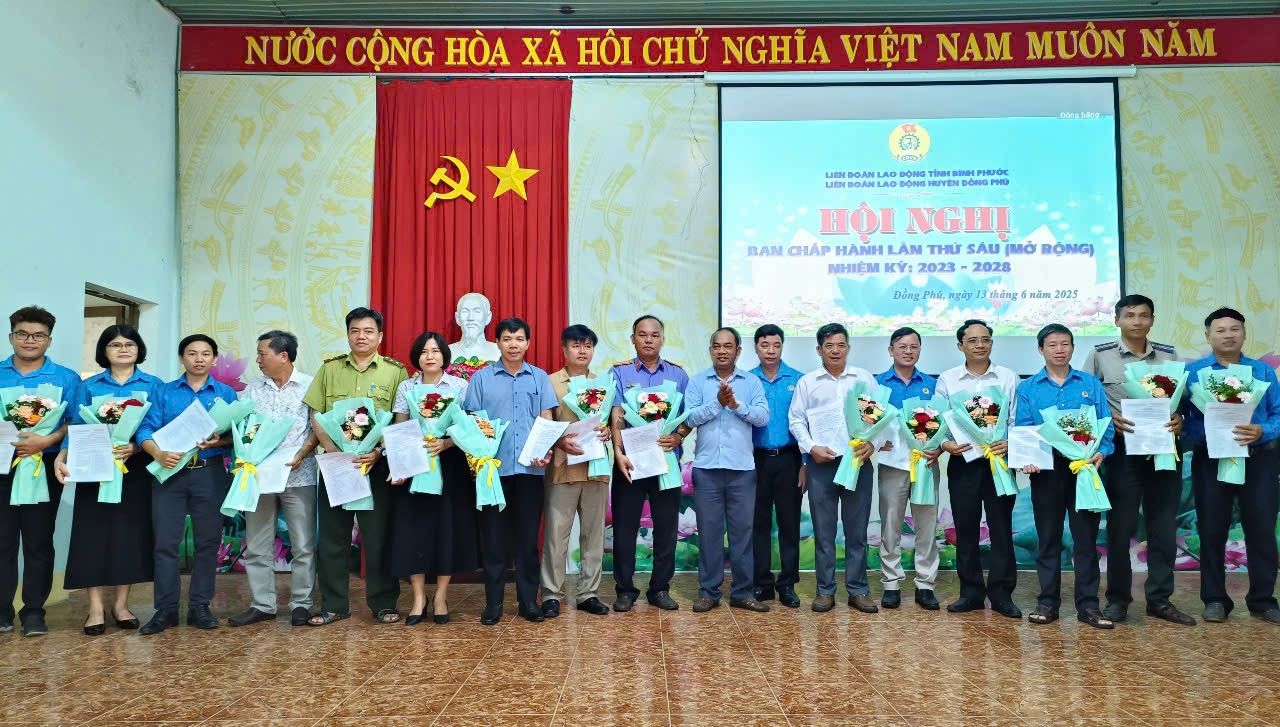 Cũng tại hội nghị, LĐLĐ huyện Đồng Phú đã thông qua Quyết định giải thể 59 công đoàn cơ sở cơ quan hành chính và đơn vị sự nghiệp hưởng 100% lương từ ngân sách nhà nước kể từ ngày 15-6-2025 và Thông qua quyết định chuyển giao 37 CĐCS về LĐLĐ tỉnh quản lý.