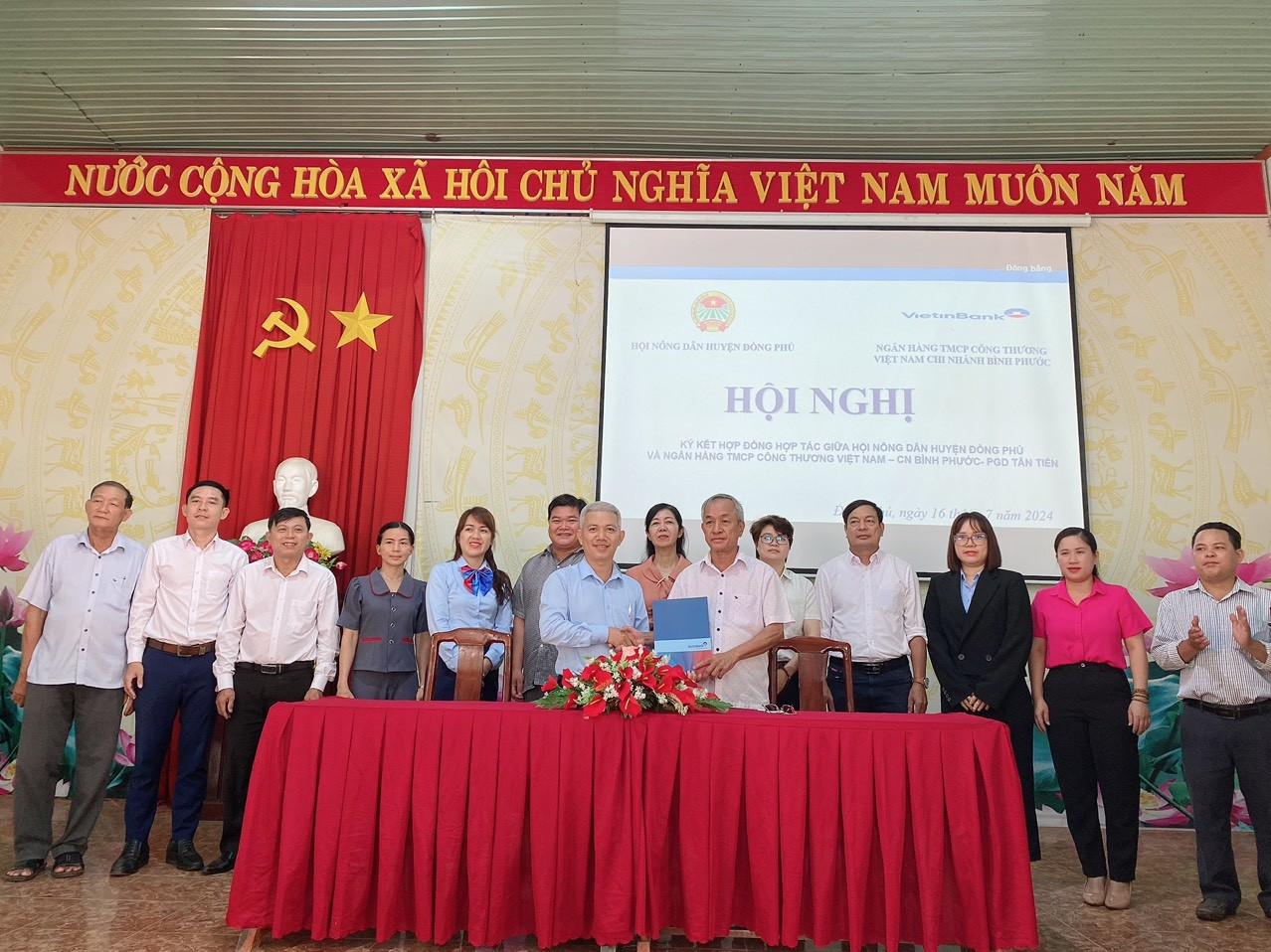 Tại hội nghị, hội Nông dân huyện phối hợp với Ngân hàng TMCP Công Thương Việt Nam (VietinBank) ký kết hợp tác nhằm triển khai chính sách tín dụng phục vụ phát triển sản xuất kinh doanh và tiêu dùng trong cán bộ, hội viên nông dân. Qua đó hỗ trợ tích cực cho hội viên nông dân Đồng Phú được tiếp cận nguồn vốn vay ưu đãi để phát triển sản xuất, kinh doanh.