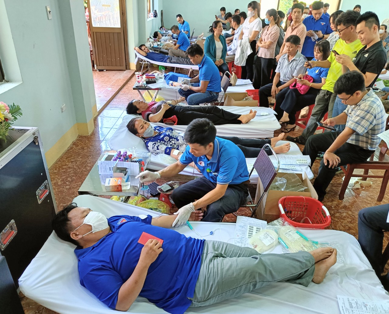 Đông đảo cán bộ và nhân dân trong huyện đăng ký hiến máu