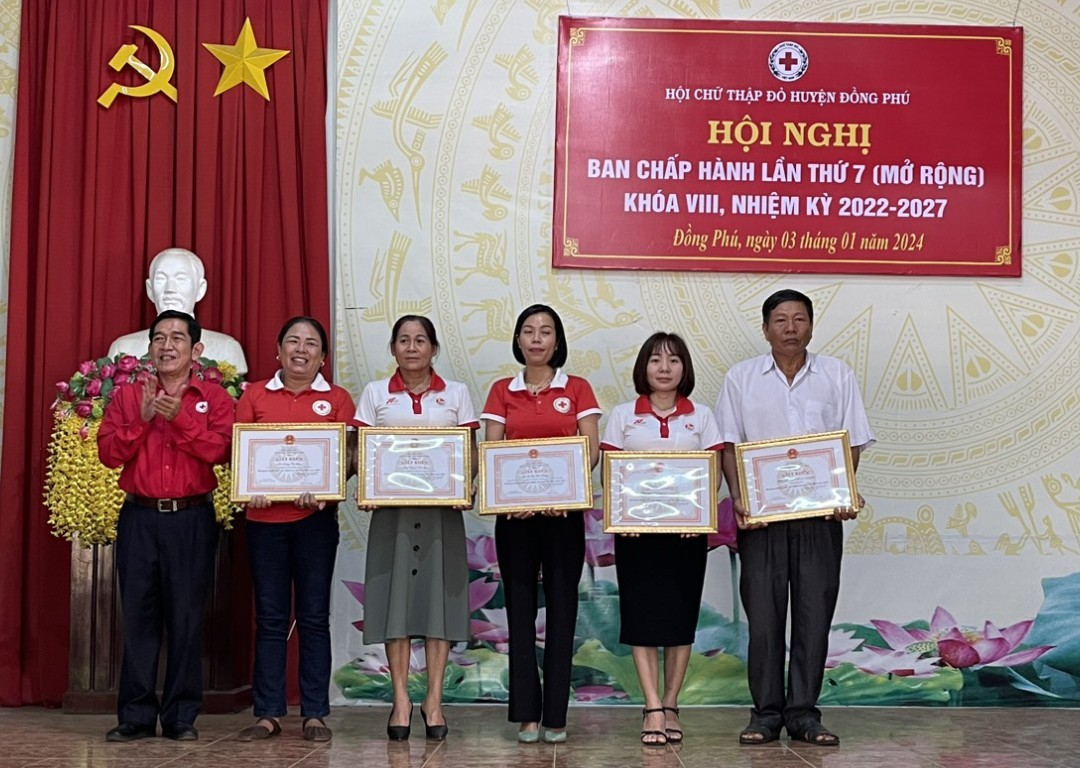 Nhân dịp này, Hội CTĐ tỉnh tặng giấy khen cho Hội CTĐ huyện Đồng Phú dẫn đầu phong trào Công tác truyền thông năm 2023, tặng giấy khen cho 2 tập thể có thành tích tốt trong công tác Hội và phong trào CTĐ tỉnh năm 2023; Ban thường trực Hội Chữ thập đỏ huyện Đồng Phú tặng giấy khen cho 2 cá nhân có thành tích tốt trong công tác Hội và Phong trào Chữ thập đỏ huyện năm 2023.