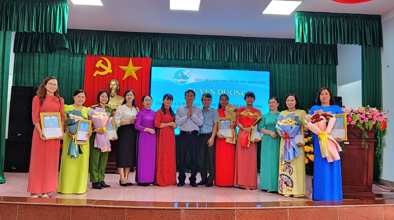 Nhân dịp này, Hội LHPN huyện đã khen thưởng 02 tập thể, 05 cá nhân có thành tích trong thực hiện Nghị quyết Đại hội phụ nữ các cấp và Nghị quyết Đại hội đại biểu phụ nữ huyện Đồng Phú lần thứ XII, nhiệm kỳ 2021- 2026.