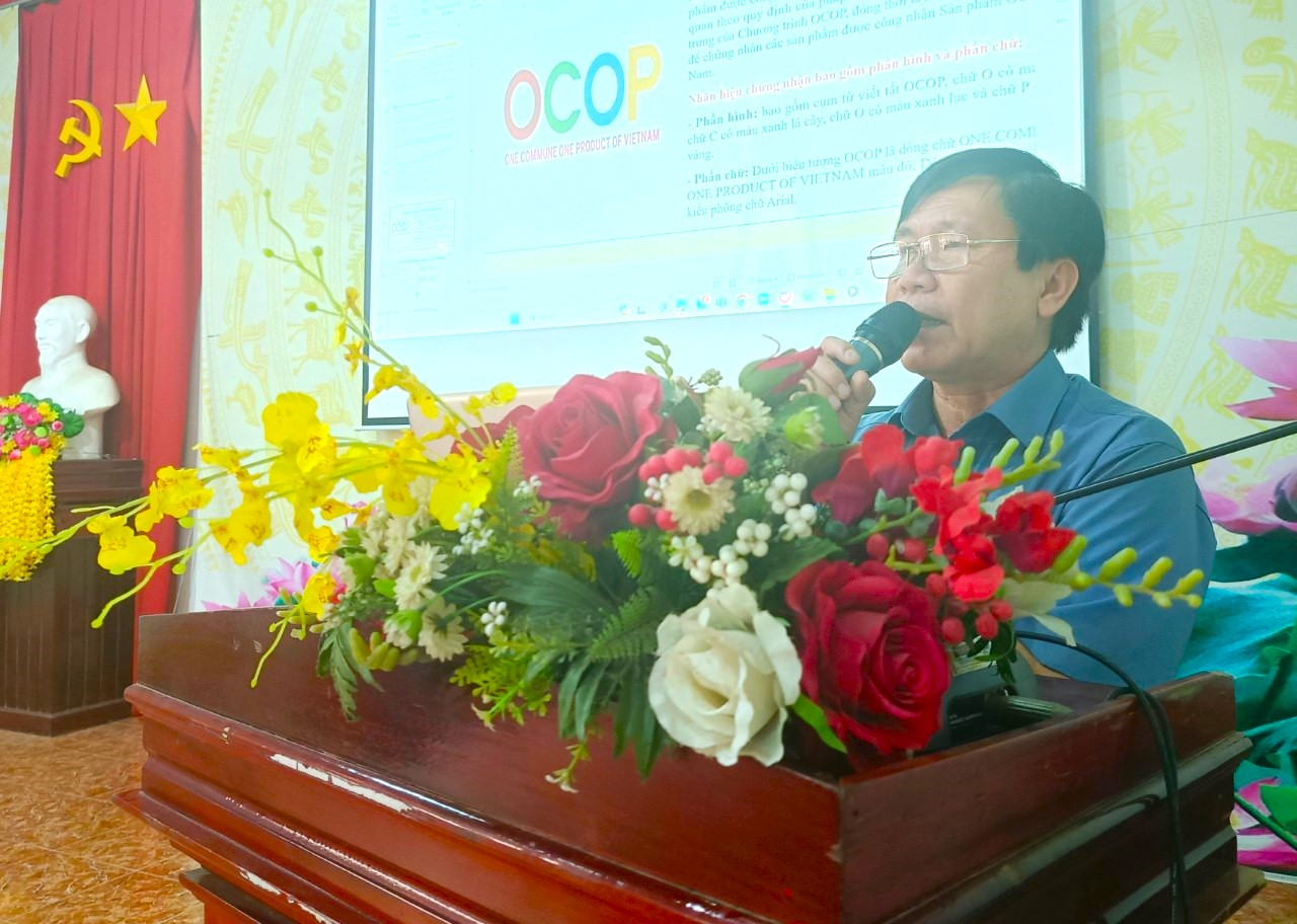 Ông Huỳnh Hữu Nhưng, Chuyên viên Sở Nông nghiệp và Phát triển nông thôn tỉnh giới thiệu tổng quan chương trình OCOP