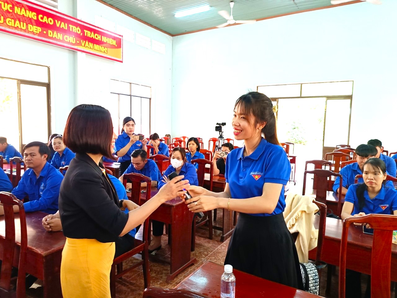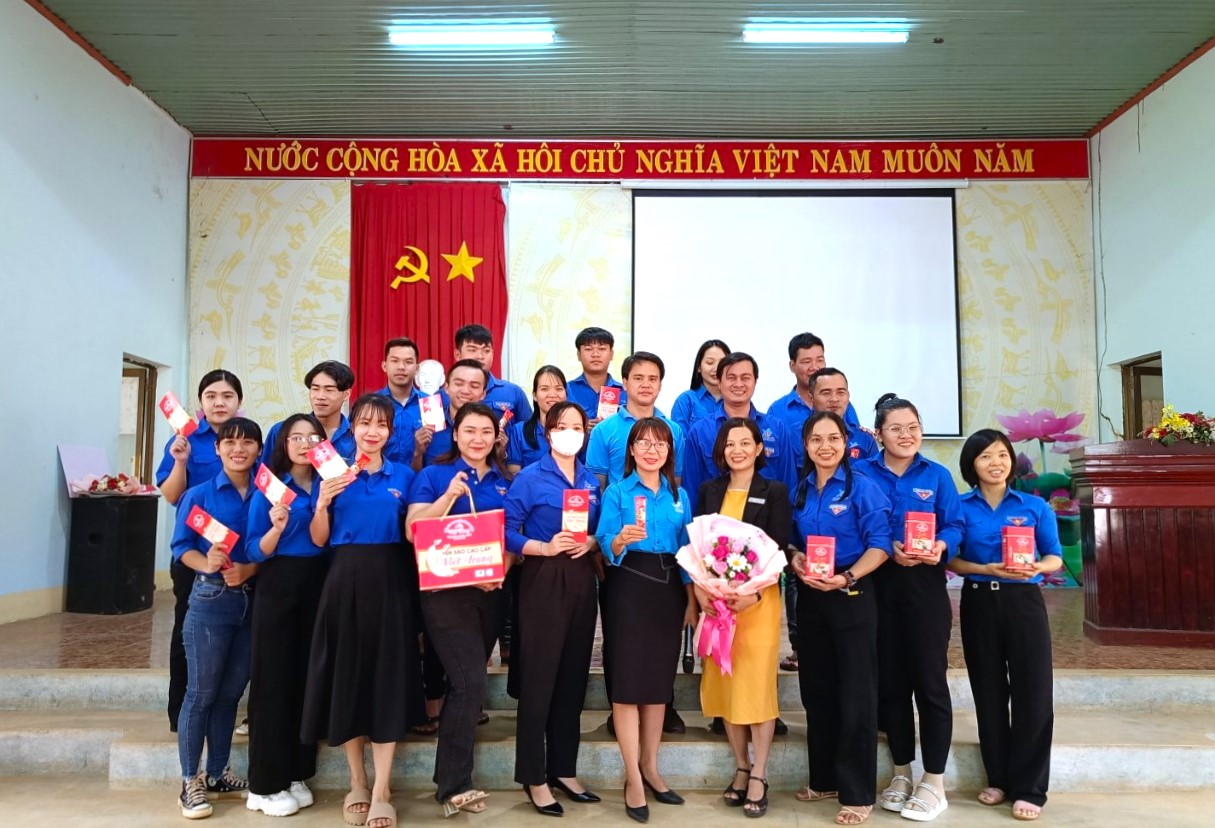 Cán bộ, đoàn viên thanh niên chụp hình lưu niệm vùng giảng viên