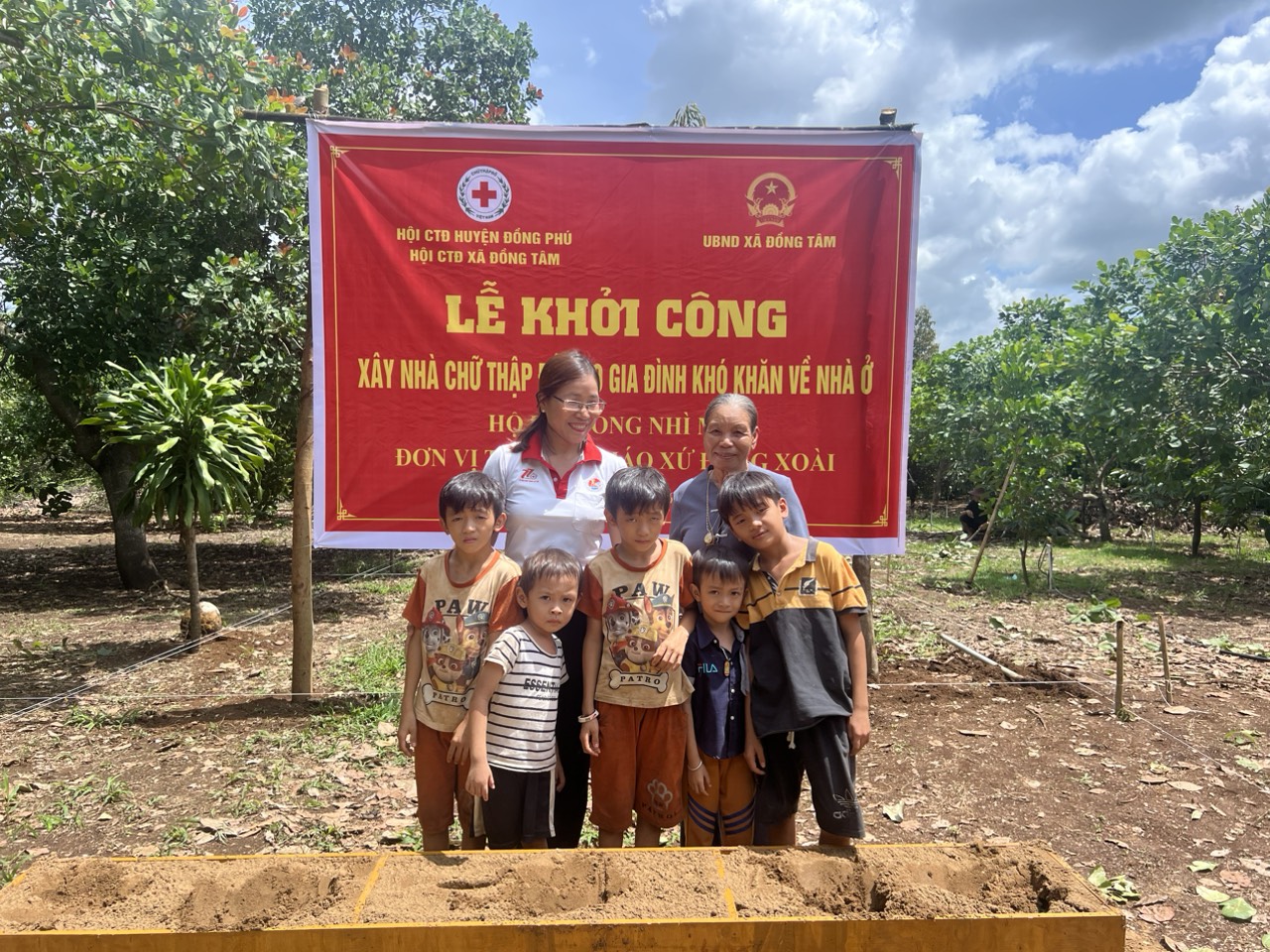 Nắm bắt được hoàn cảnh khó khăn của gia đình bà, Hội CTĐ xã Đồng Tâm đã vận động mạnh thường quân tặng cho 1 miếng đất để xây nhà. Dự kiến tổng kinh phí xây dựng trên 200 triệu đồng, trong đó Giáo xứ Đồng Xoài là nhà tài trợ chính, hội chữ thập đỏ huyện hỗ trợ 30 triệu đồng.
