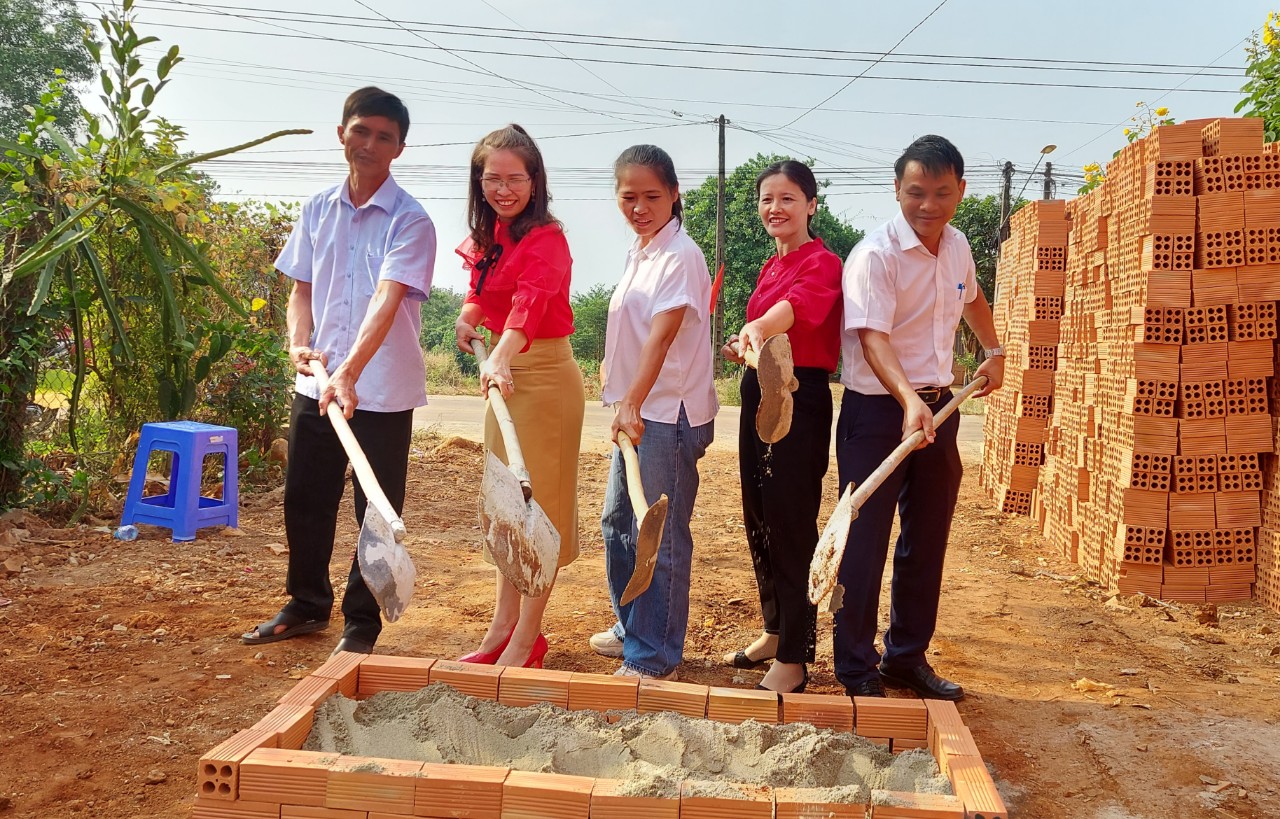 Và thực hiện nghi thức khởi công để căn nhà sớm hoàn thiện bàn giao cho gia đình bà Thắm