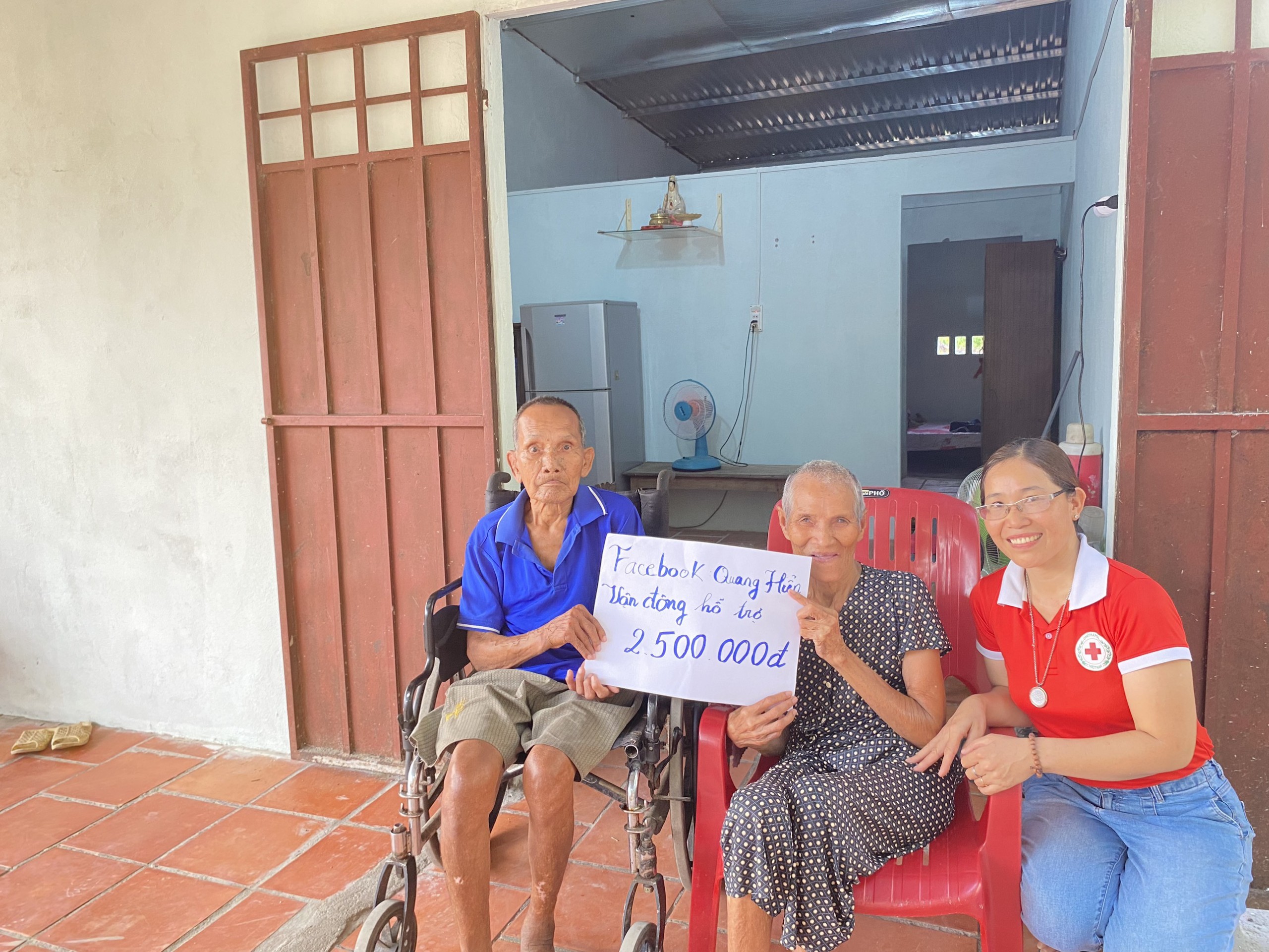 Tại buổi lễ bàn giao, Hội Chữ thập đỏ xã và một số mạnh thường quân cũng tặng một số phần quà động viên gia đình bà Dương Thị Hóa với mong muốn ông bà sẽ vươn lên ổn định cuộc sống.