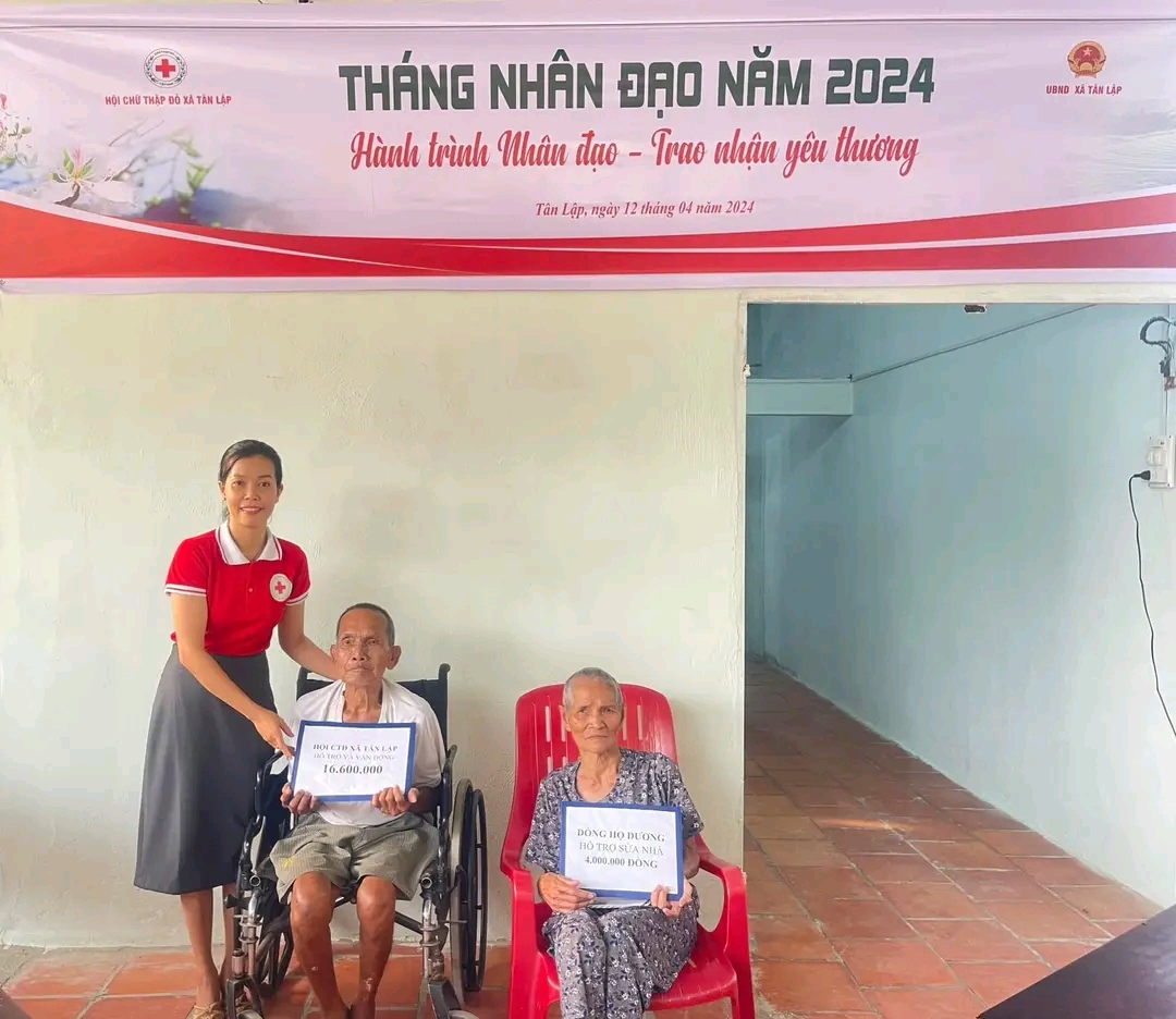 Gia đình bà Hóa có hoàn cảnh khó khăn, cả 2 vợ chồng đều tuổi cao, sức khỏe yếu, trước đây ông bà ở trong ngôi nhà cấp bốn xuống cấp, hư hỏng nhiều. Xét thấy hoàn cảnh khó khăn đó, UBND xã và Hội chữ thập đỏ xã đã vận động các mạnh thường quân, nhà hảo tâm hỗ trợ 31,7 triệu đồng sửa chữa lại căn nhà cho ông bà. Trong đó, hội chữ thập đỏ huyện vận động hỗ trợ 11.150.000 đồng, số tiền còn lại do UBND xã Tân Lập và Hội chữ thập đỏ xã vận động.