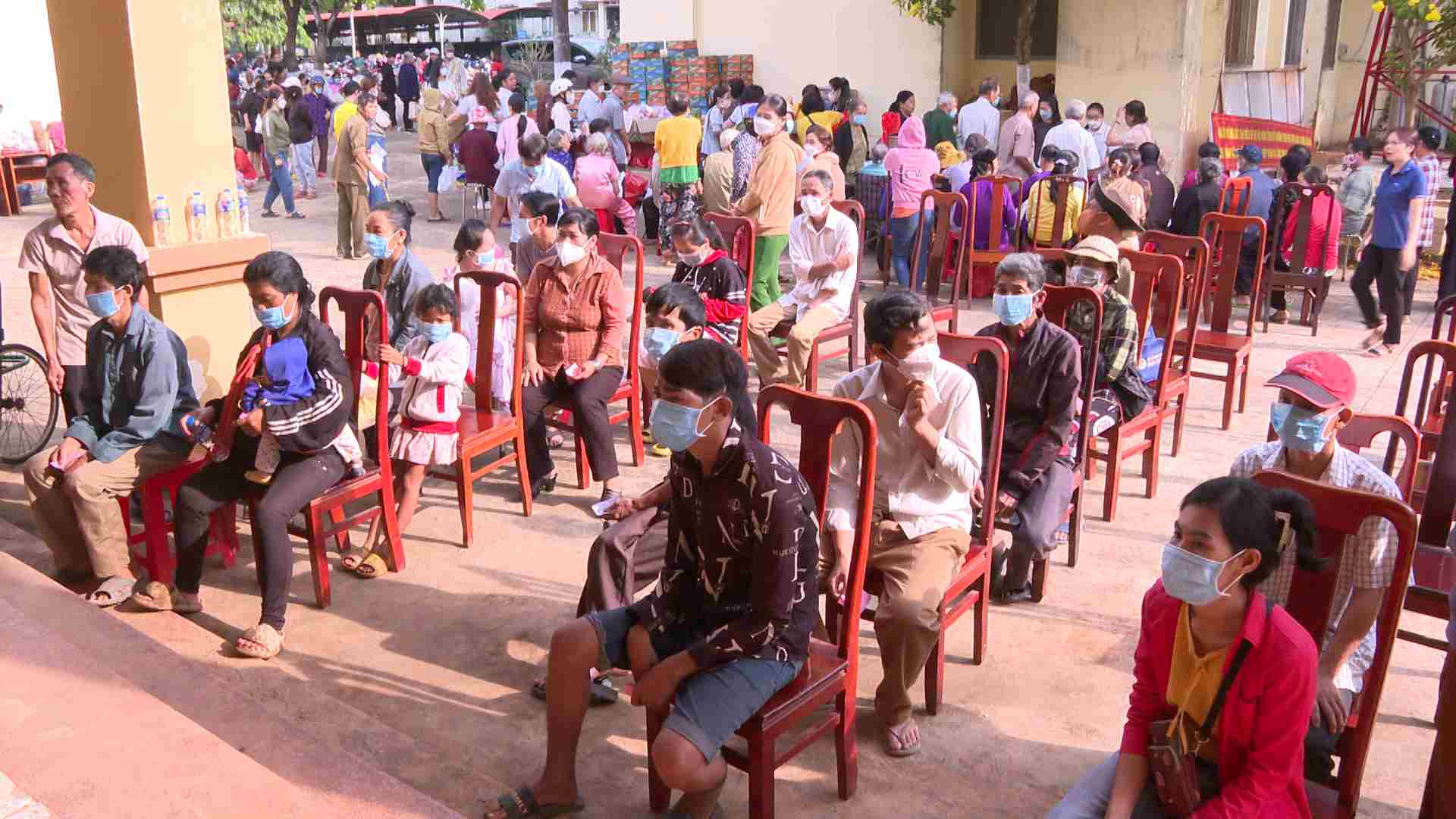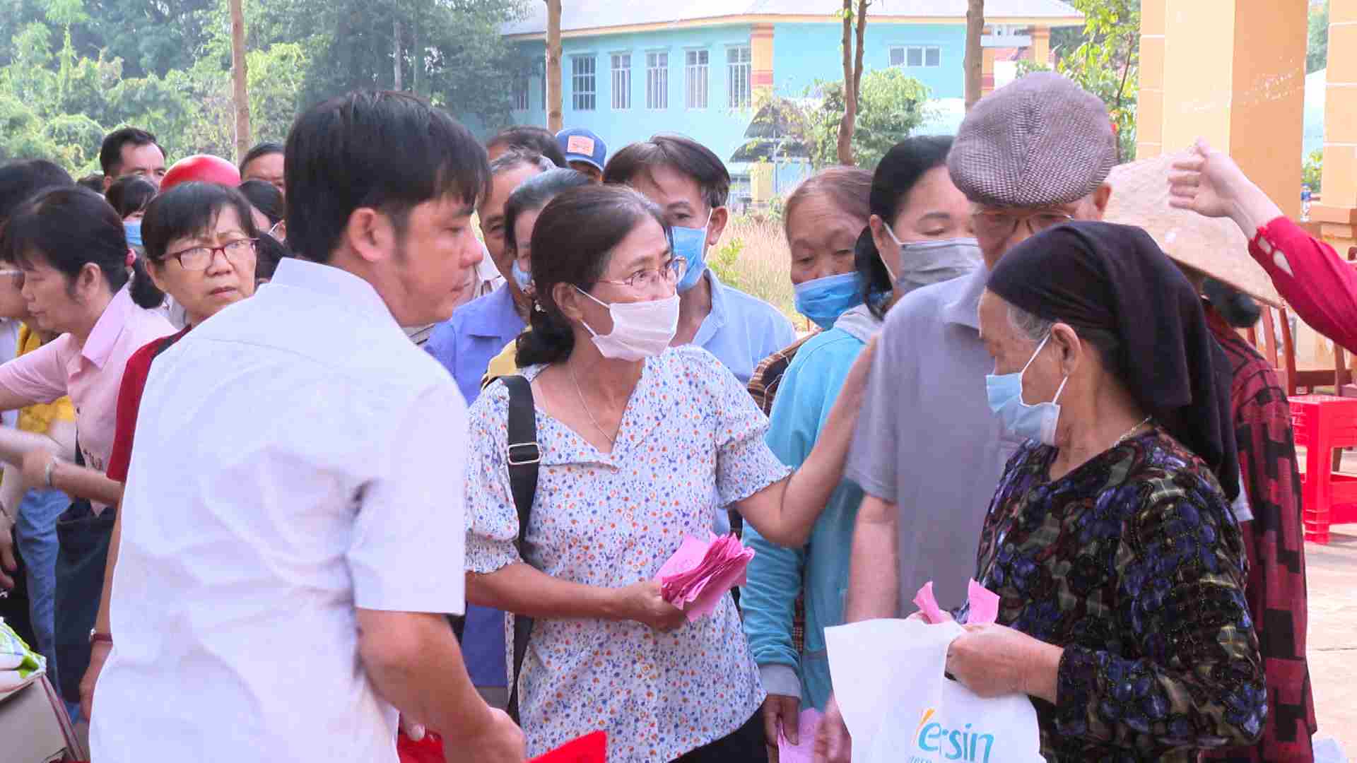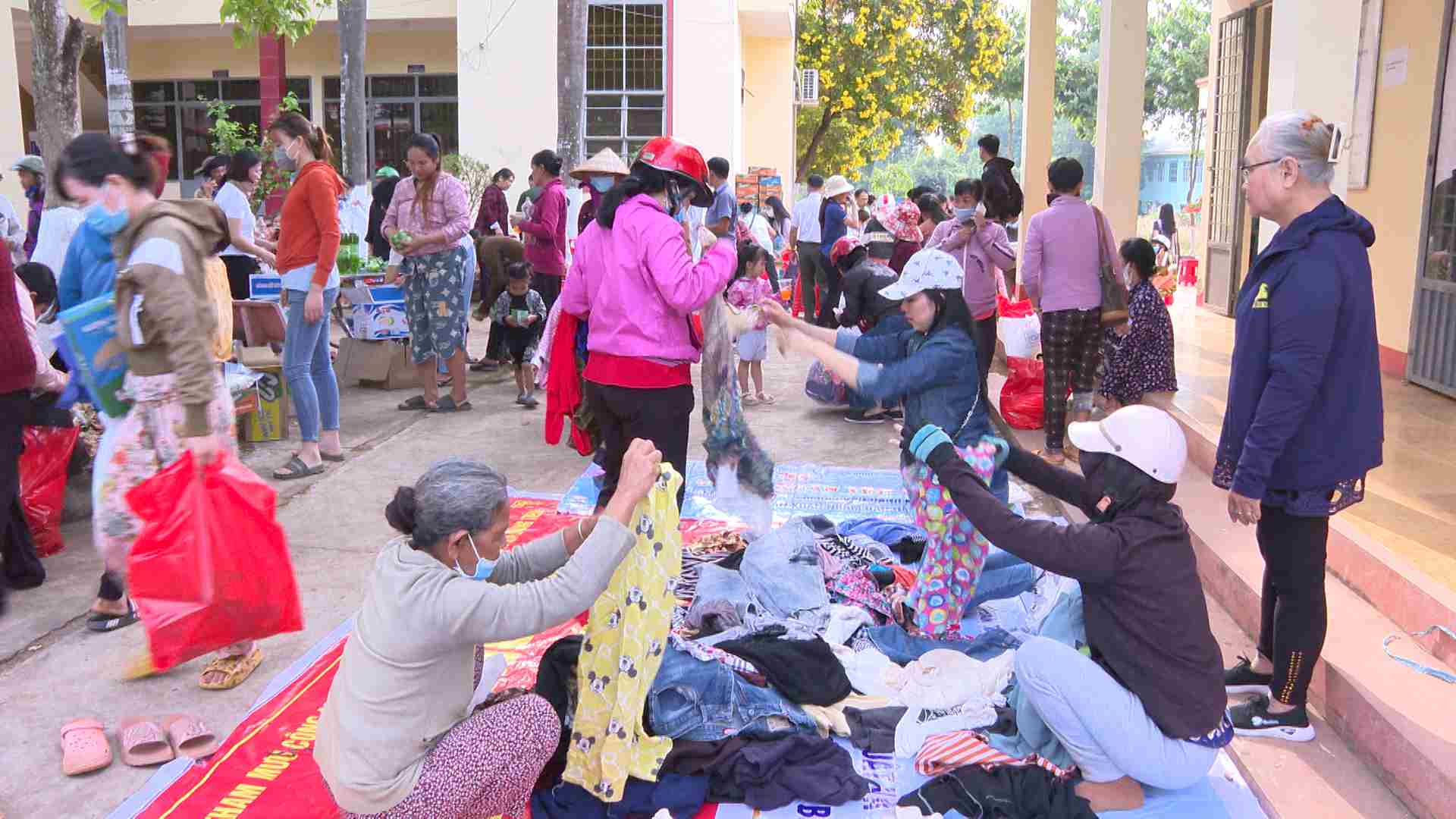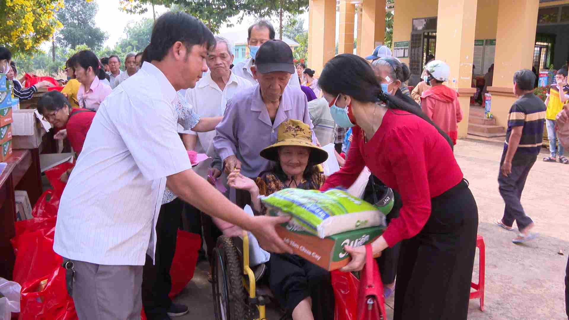 Người dân phấn khởi chuẩn bị nhận quà