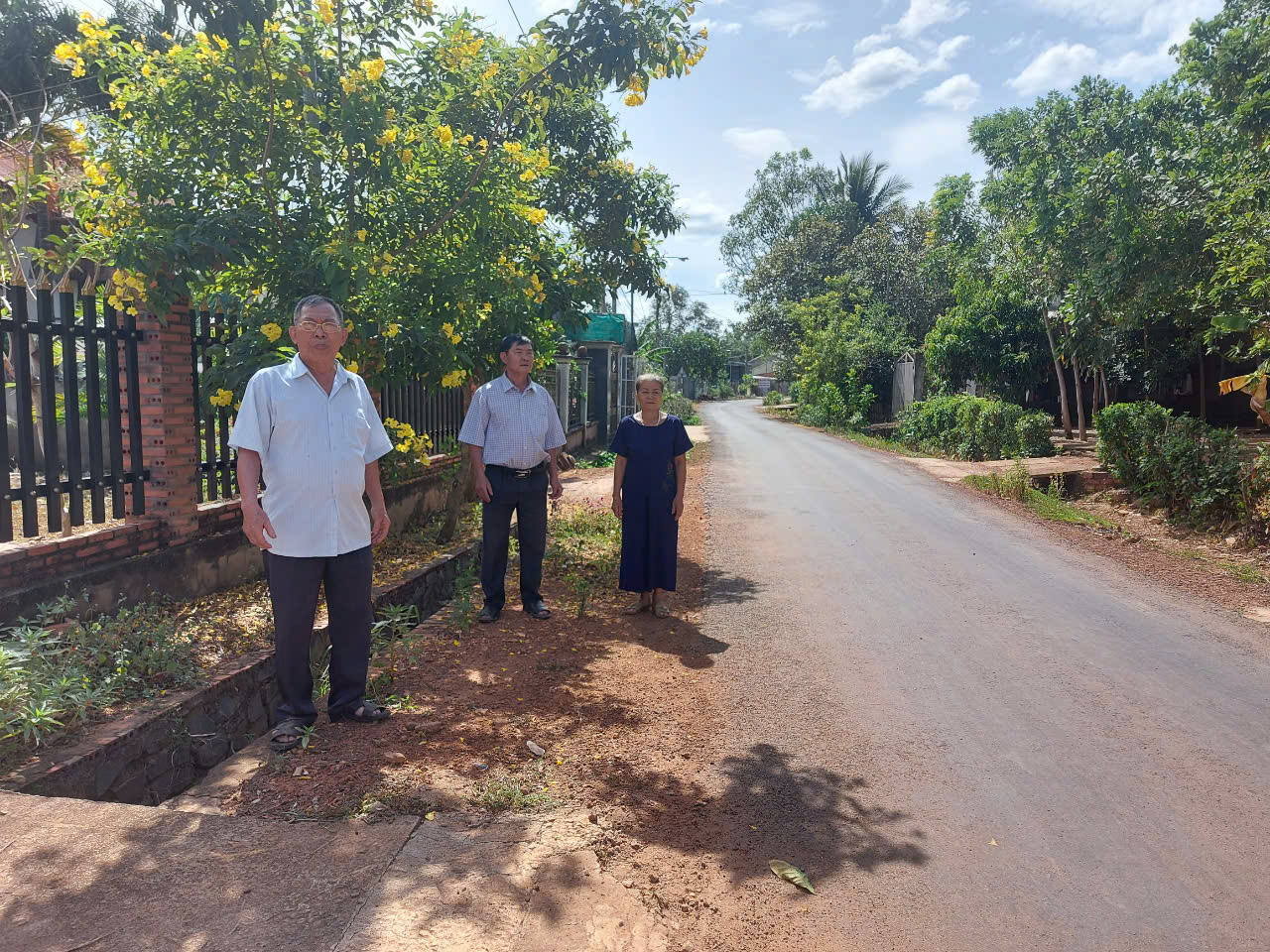 Chú thích:ông Lưu Văn Trung ( đứng đầu ảnh) cùng ban ấp Thuận An (xã Thuận Lợi) vận động nhân dân xây dựng, giữ gìn cảnh quan đường làng ngõ xóm xanh, sạch, đẹp.