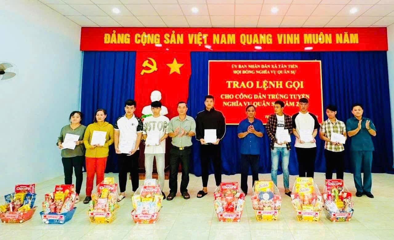 Trao lệnh nhập ngũ, tặng quà cho thanh niên trúng tuyển nghĩa vụ quân sự tại xã Tân Tiến