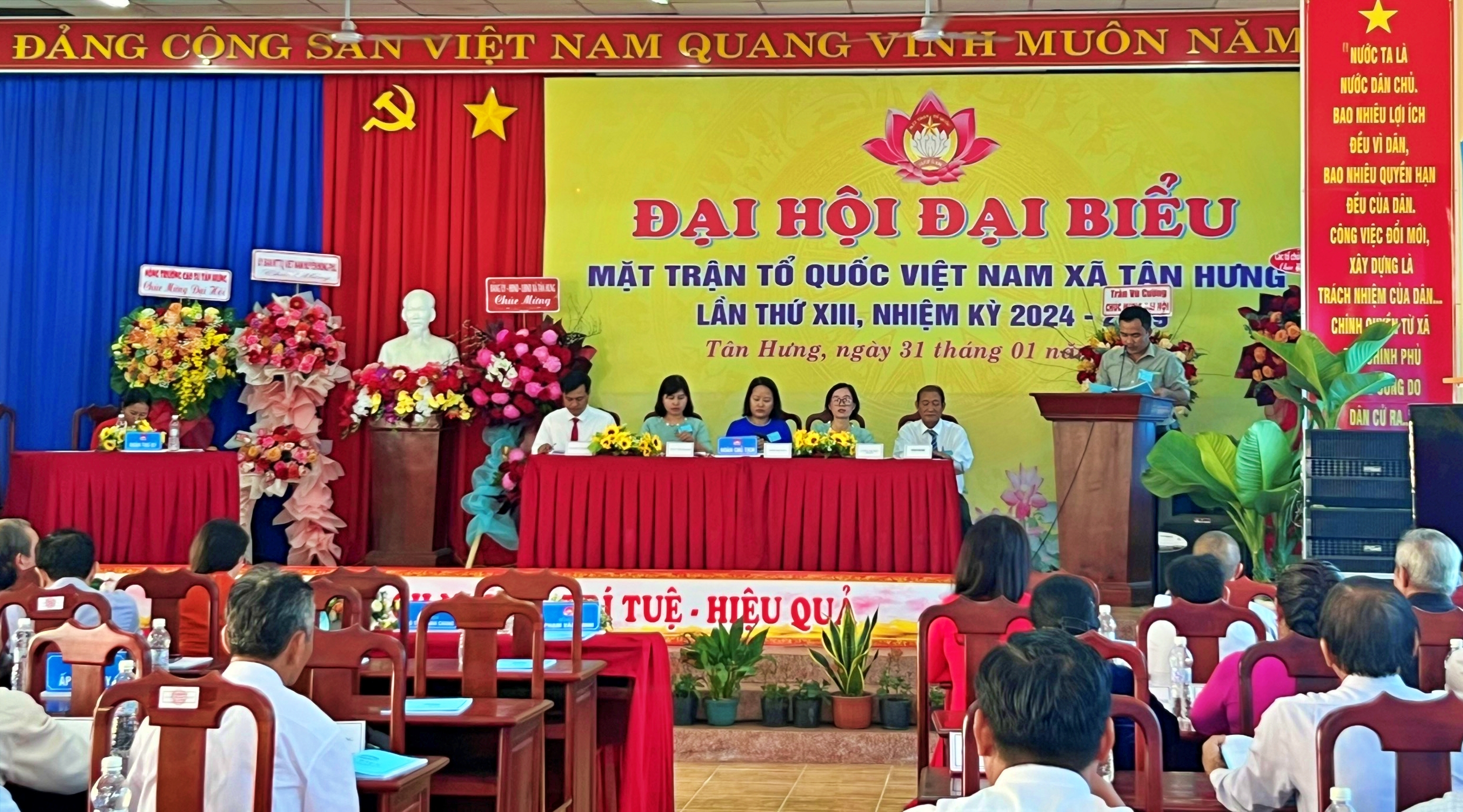 Với tinh thần dân chủ, đoàn kết, đại hội đã hiệp thương cử 31 vị tham gia ủy viên UBMTTQ Việt Nam xã khóa XIII, 14 đại biểu dự đại hội cấp trên. Bà Thiều Thị Thảo được đại hội tín nhiệm hiệp thương giữ chức Chủ tịch UBMTTQ Việt Nam xã Tân Hưng, nhiệm kỳ 2024-2029.