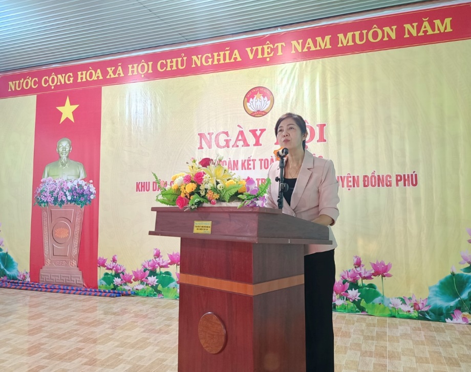 Trưởng Ban dân vận Huyện uỷ, Chủ tịch UBMTTQ Việt Nam huyện Ngô Thị Thanh Chung phát biểu tại ngày hội