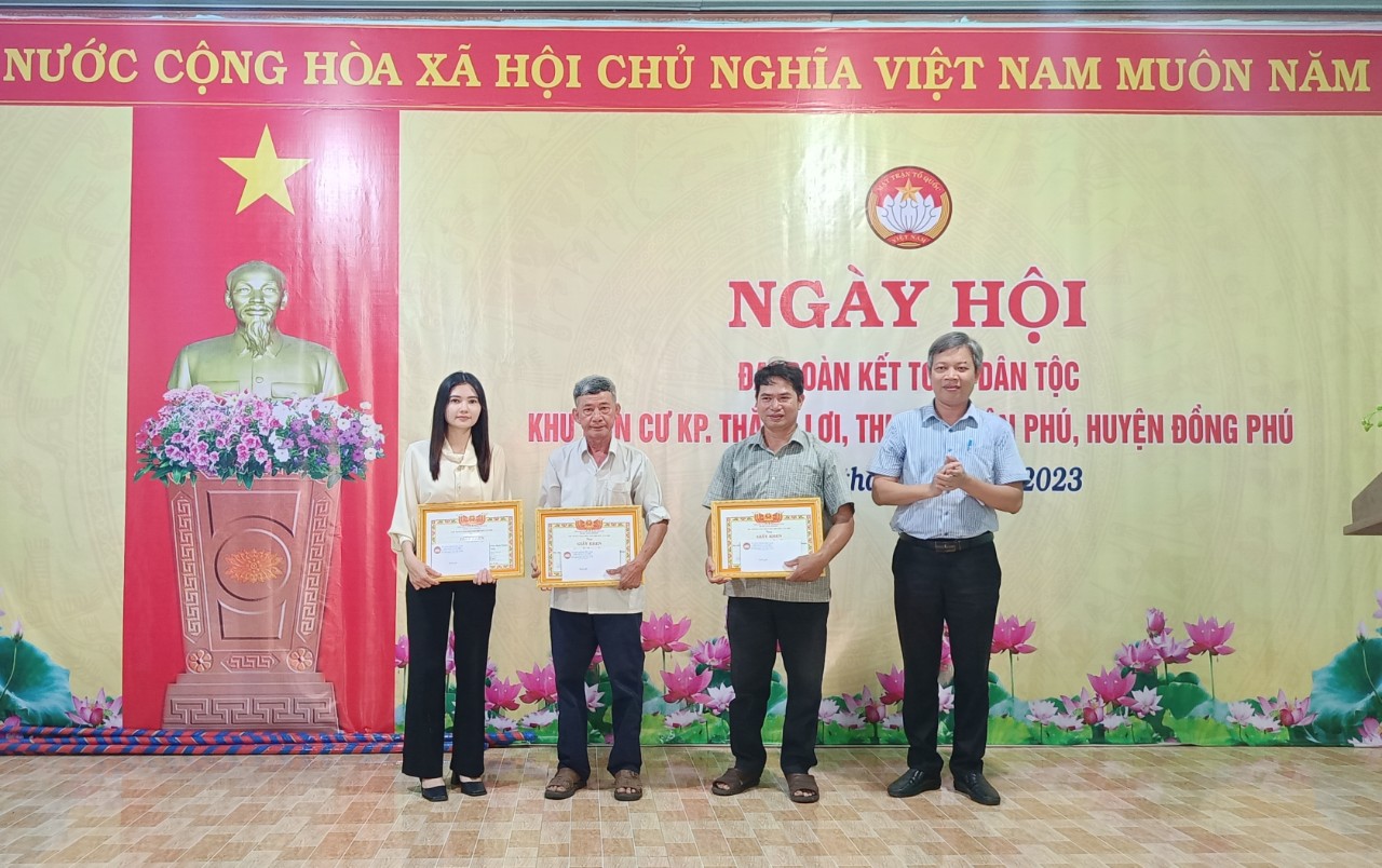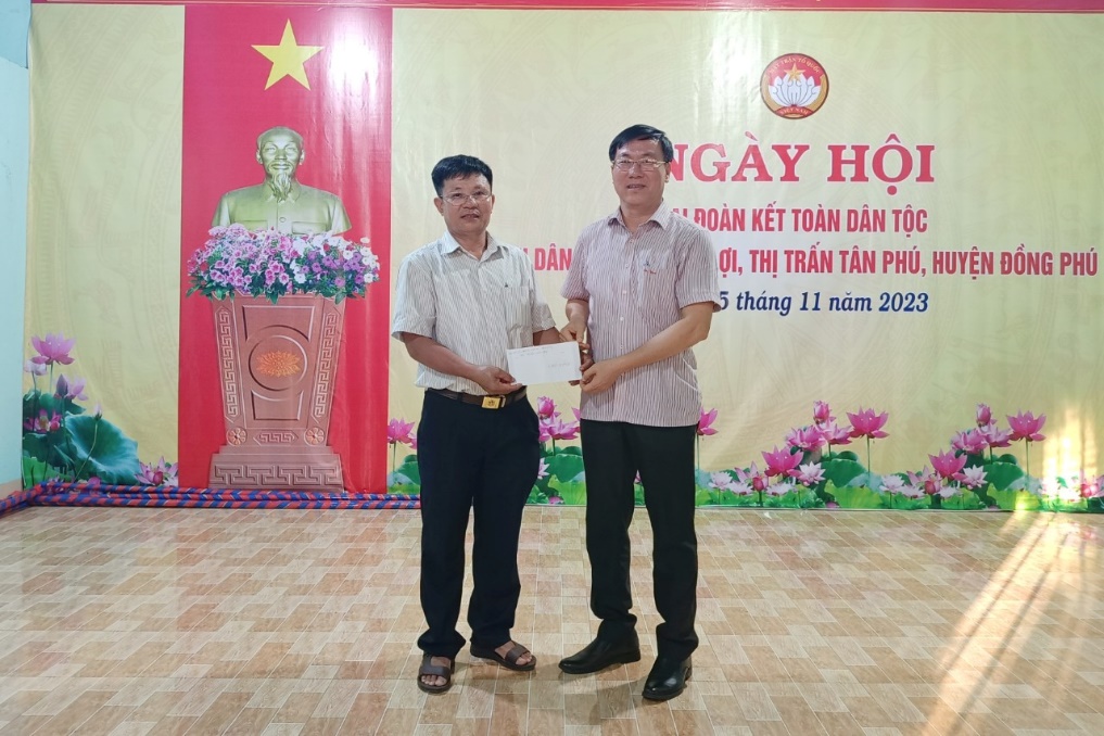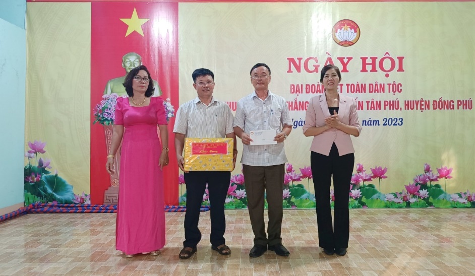 Dịp này, lãnh đạo huyện và thị trấn Tân Phú đã có các phần quà ý nghĩa tặng khu dân cư khu phố Thắng Lợi. Cùng với đó, uỷ ban MTTQ huyện và UBND thị trấn Tân Phú đã khen thưởng cho các hộ đạt gia đình văn hoá tiêu biểu trong năm 2023. Ngoài ra, một số hộ có hoàn cảnh khó khăn cũng được Uỷ ban MTTQ thị trấn Tân Phú cũng tặng quà nhân ngày hội đại đoàn kết.