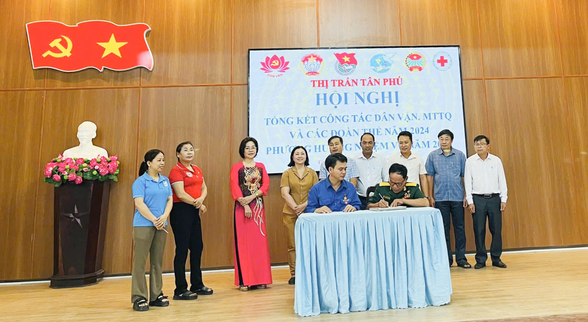 Ngày 25/12, Khối Dân vận Đảng ủy thị trấn Tân Phú tổ chức tổng kết công tác dân vận, MTTQ và các đoàn thể năm 2024, triển khai phương hướng nhiệm vụ năm 2025. Dự hội nghị lãnh đạo Ban dân vận Huyện ủy, Ủy ban MTTQ Việt Nam huyện, Hội Nông Dân, Huyện đoàn, Hội LHPN huyện cùng lãnh đạo Đảng ủy, HĐND, UBND, Ủy ban MTTQ, các ban, ngành, đoàn thể thị trấn.