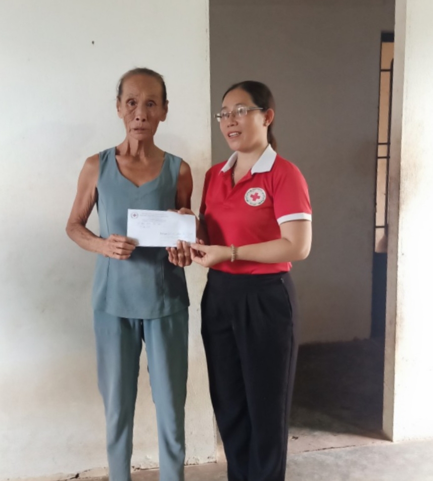 Bà Phan Thị Ngọt năm nay 73 tuổi nhưng hàng ngày vẫn phải đi làm thuê, làm mướn kiếm sống qua ngày và nuôi con trai bị bệnh tâm thần. Nhiều năm qua, dù rất muốn đưa con trai đến bệnh viện khám và điều trị bệnh nhưng vì không có tiền nên bà cũng đành bất lực. Trước hoàn cảnh khó khăn của bà Ngọt, Hội chữ thập đỏ huyện Đồng Phú đã kết nối và kêu gọi các tổ chức, nhà hảo tâm hỗ trợ được số tiền trên.