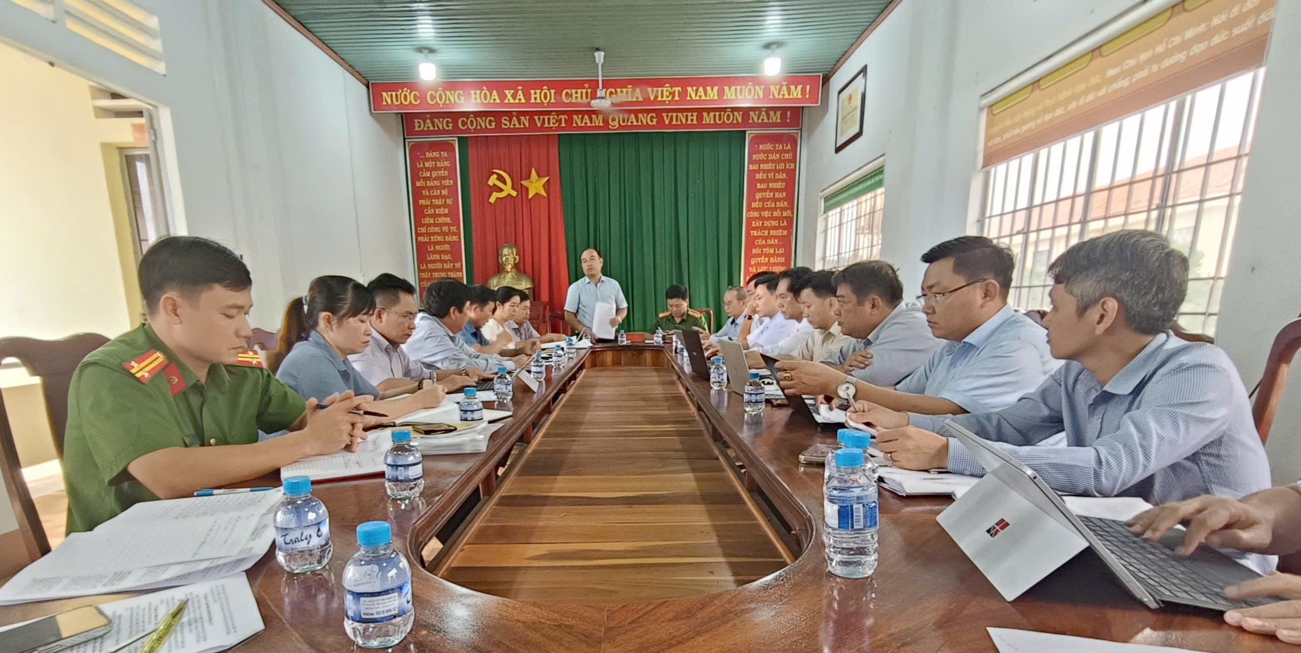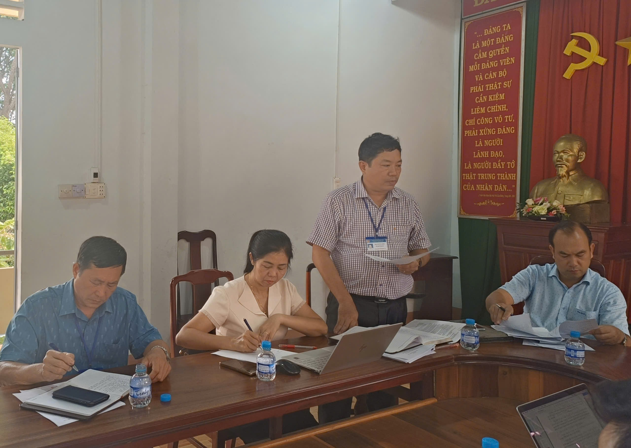 Bí thư Đảng ủy xã Mai Xuân Long báo cáo tại buổi làm việc