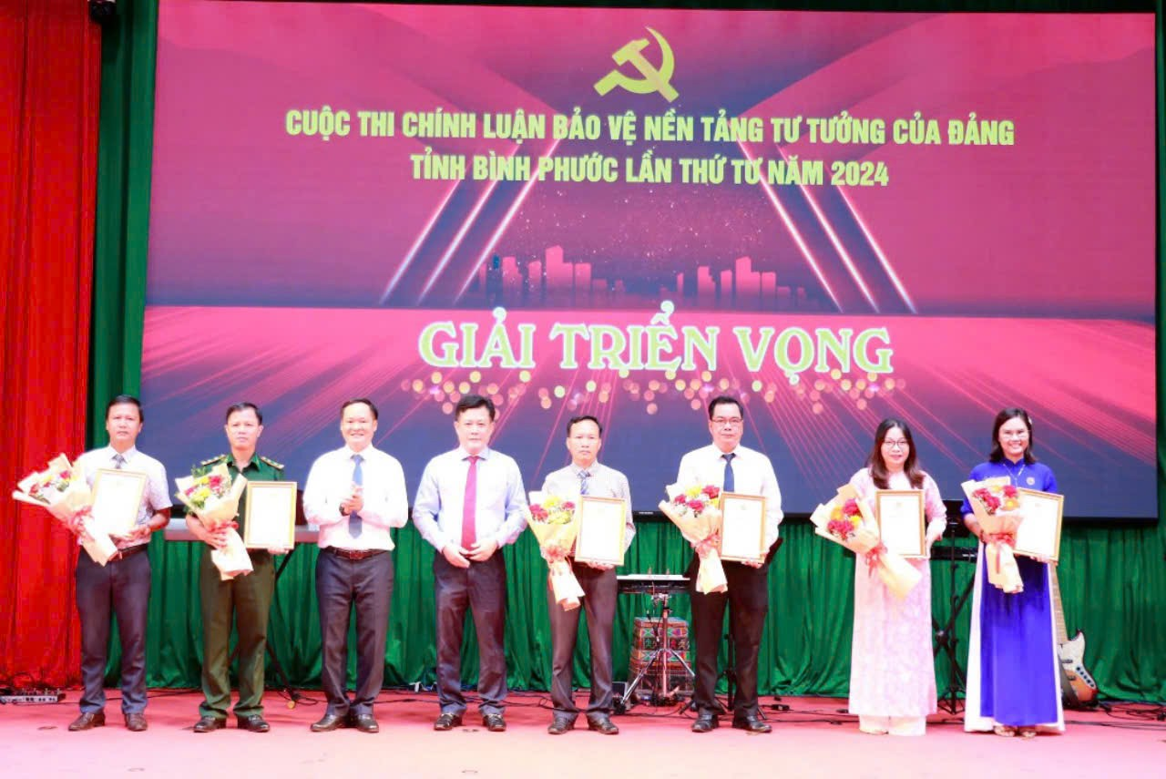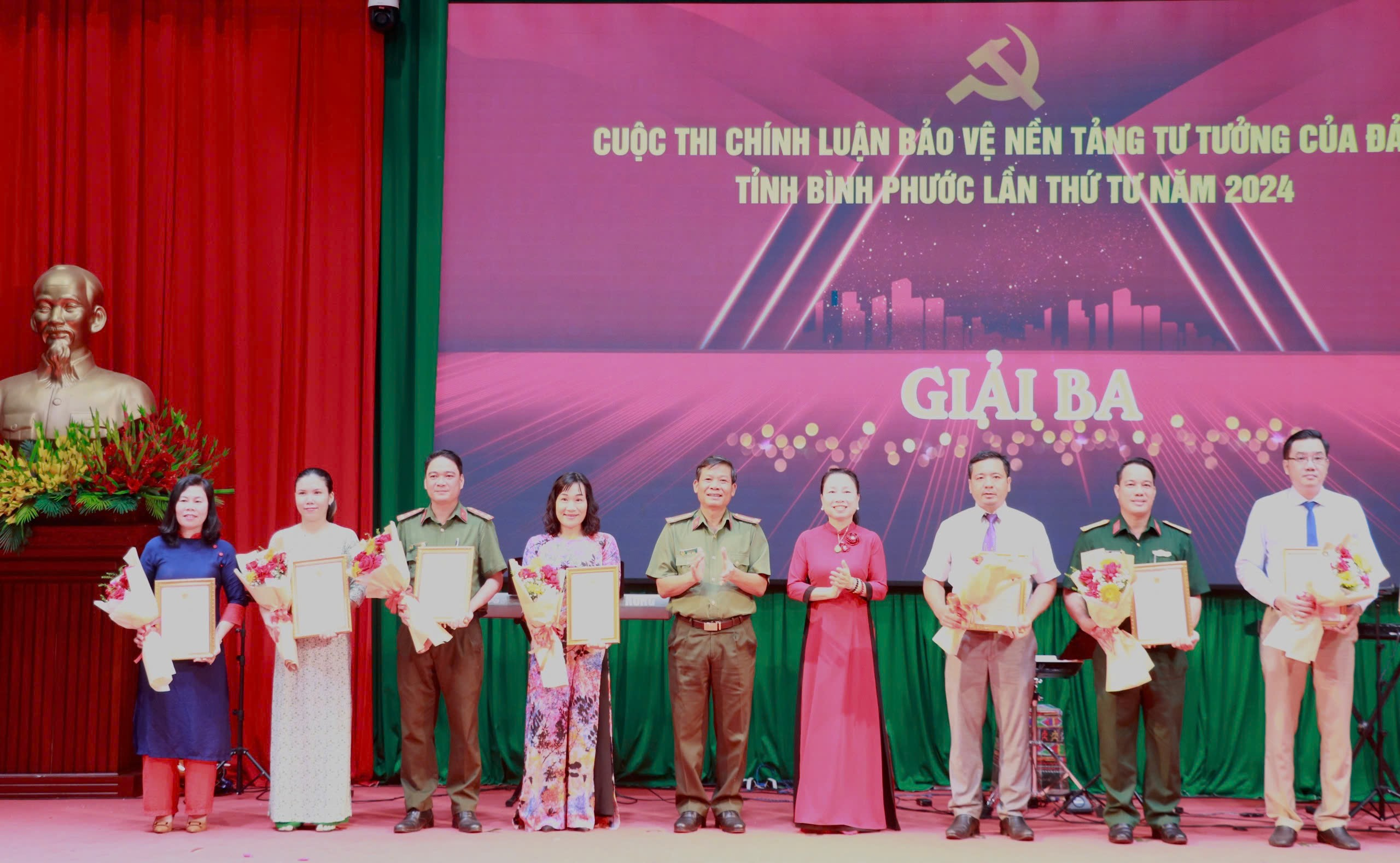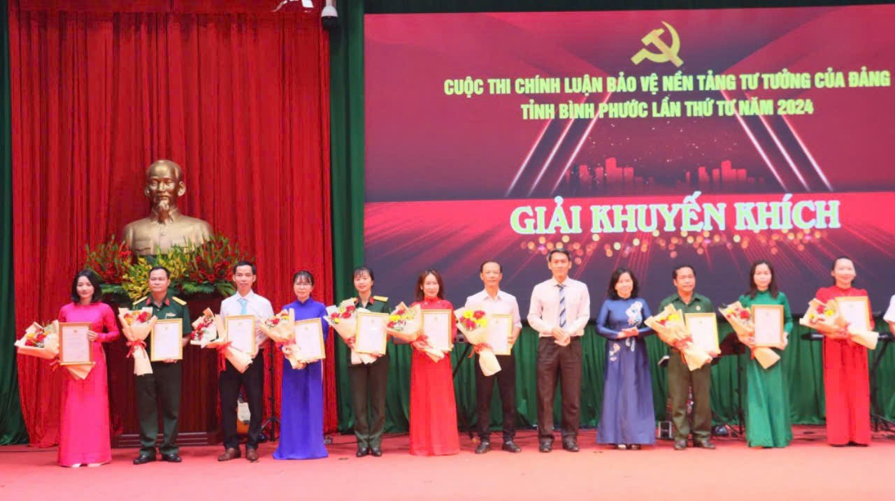Cuộc thi Chính luận bảo vệ nền tảng tư tưởng của Đảng lần thứ 4 tỉnh Bình Phước năm 2024 đã nhận được hơn 9.600 tác phẩm dự thi trong toàn tỉnh. Kết quả, Ban tổ chức đã trao giấy khen cho 6 tập thể có thành tích xuất sắc trong triển khai, tổ chức cuộc thi và trao giấy chứng nhận cho 53 tác giả, nhóm tác giả đoạt giải cao, gồm: 2 giải nhất, 5 giải nhì, 8 giải ba, 16 giải khuyến khích, 20 giải triển vọng, 1 giải dành cho người lớn tuổi và 1 giải dành cho người nhỏ tuổi tiêu biểu.