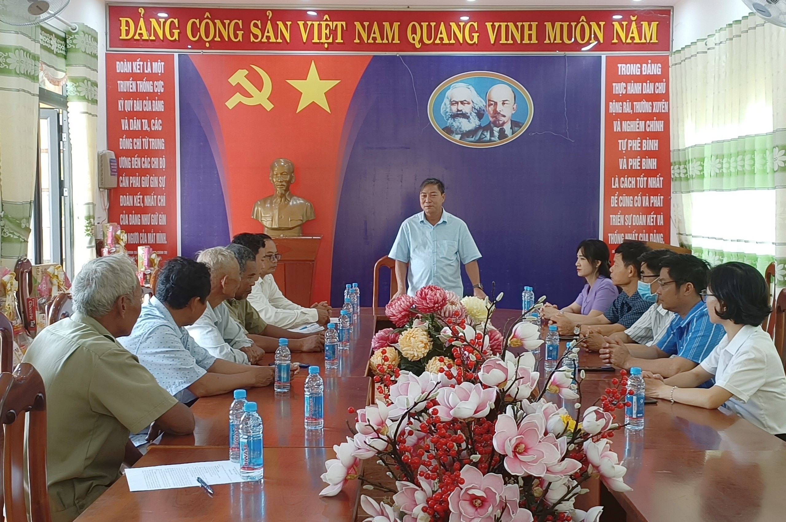 Phó Bí thư thường trực Huyện ủy Đinh Văn Kỹ chúc các già làng, người có uy tín đón tết Chôl Chnăm Thmây vui vẻ, đầm ấm