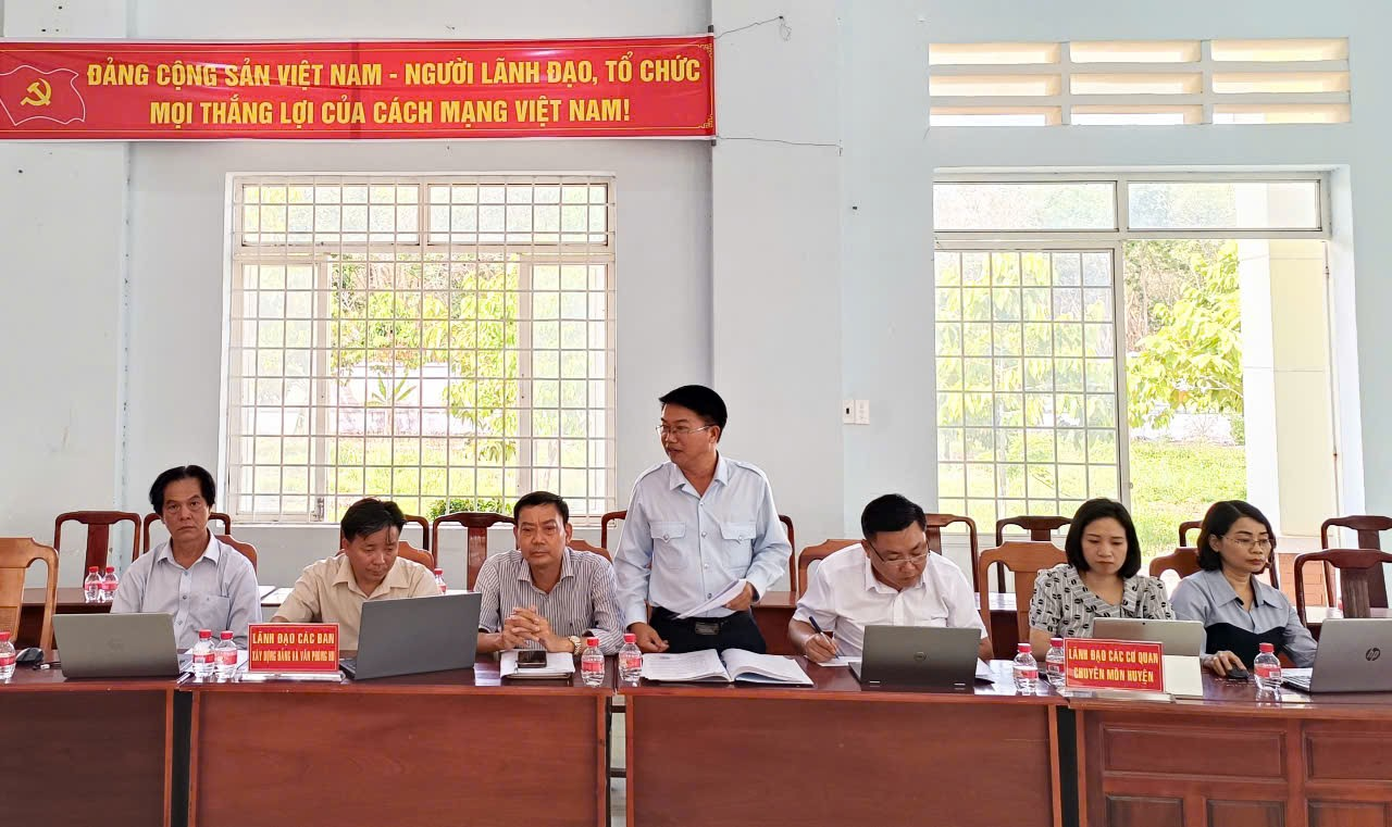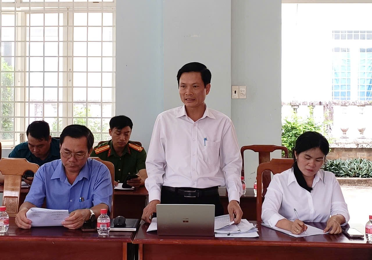 Chủ tịch UBND xã Tân Tiến Nguyễn Ngọc Quang báo cáo tại buổi làm việc