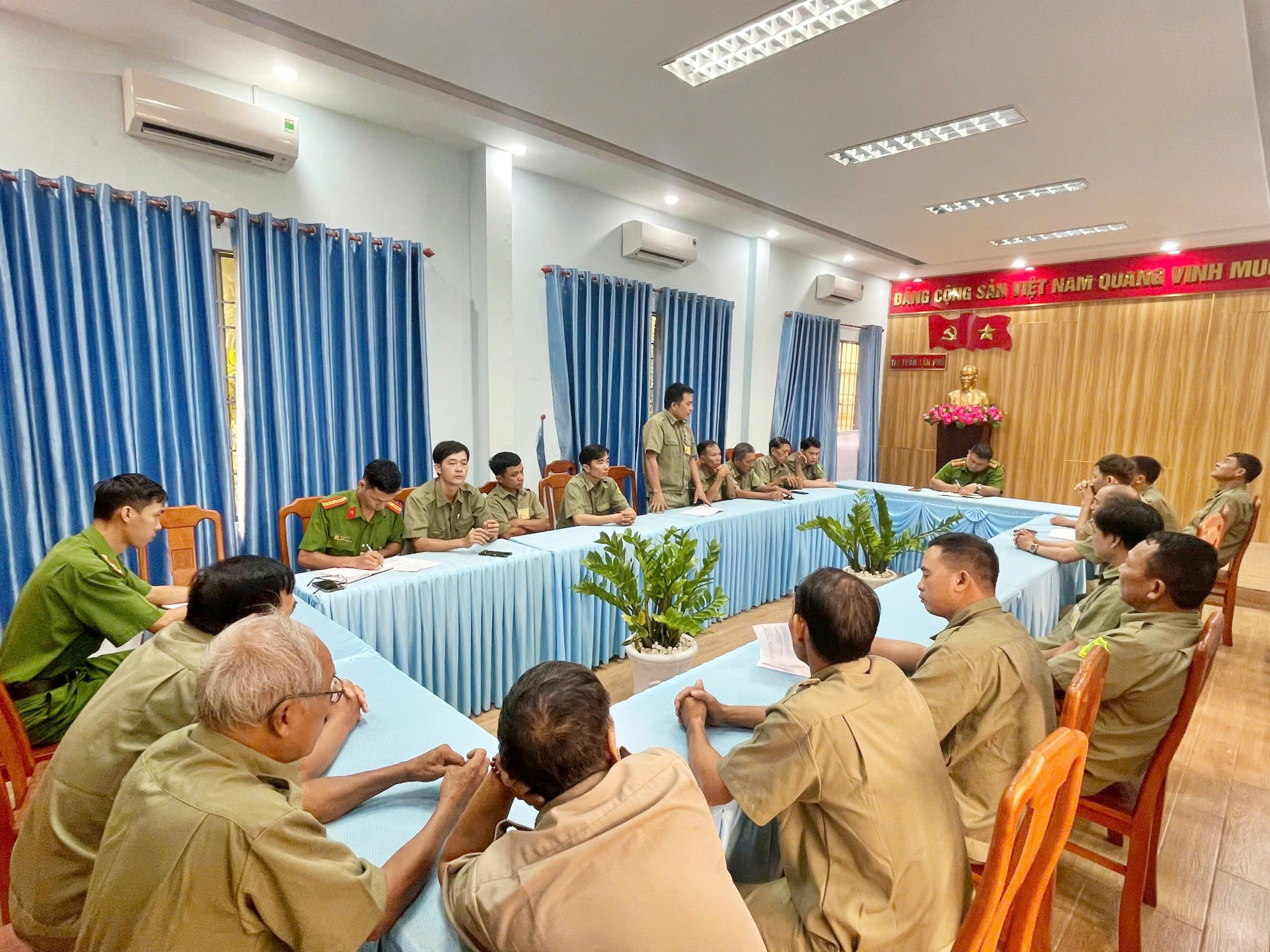 Lãnh đạo Công an thị trấn Tân phú giao ban cùng Tổ bảo vệ ANTT ở cơ sở