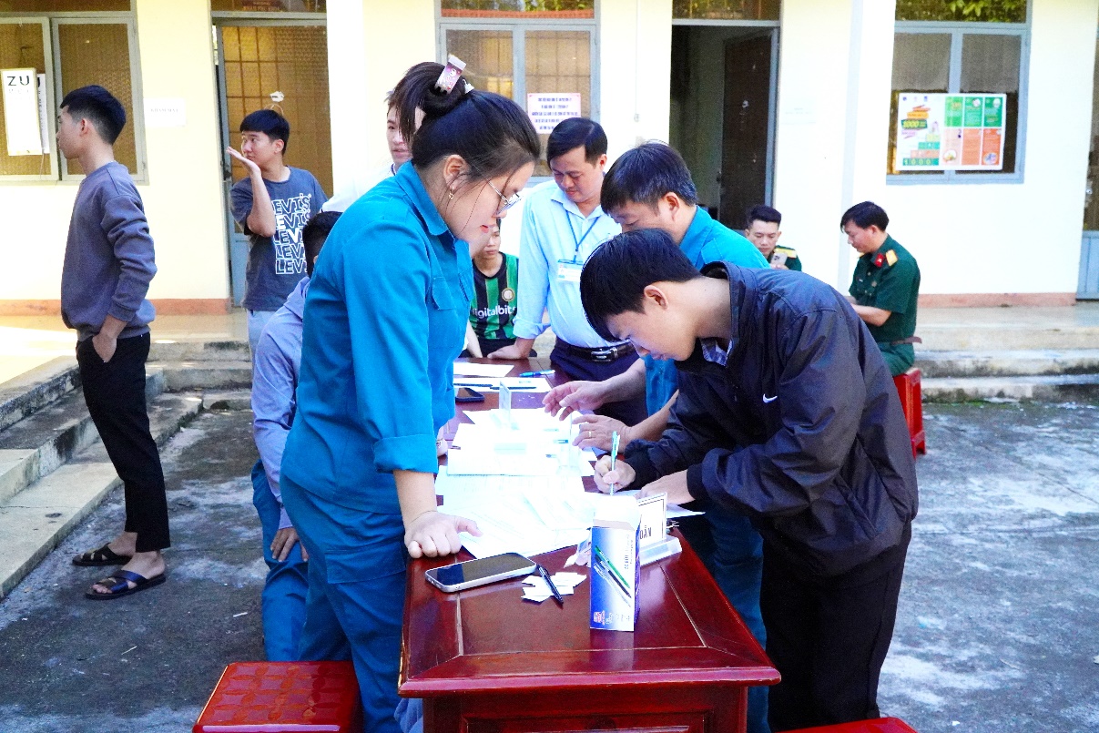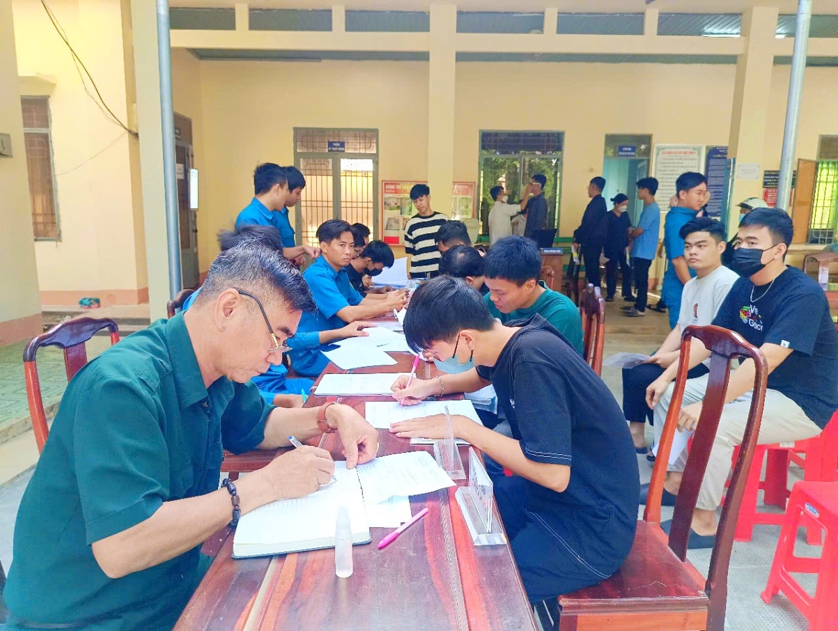 Thanh niên xã Tân Hưng và thị trấn Tân Phú hăng hái đến khám tuyển