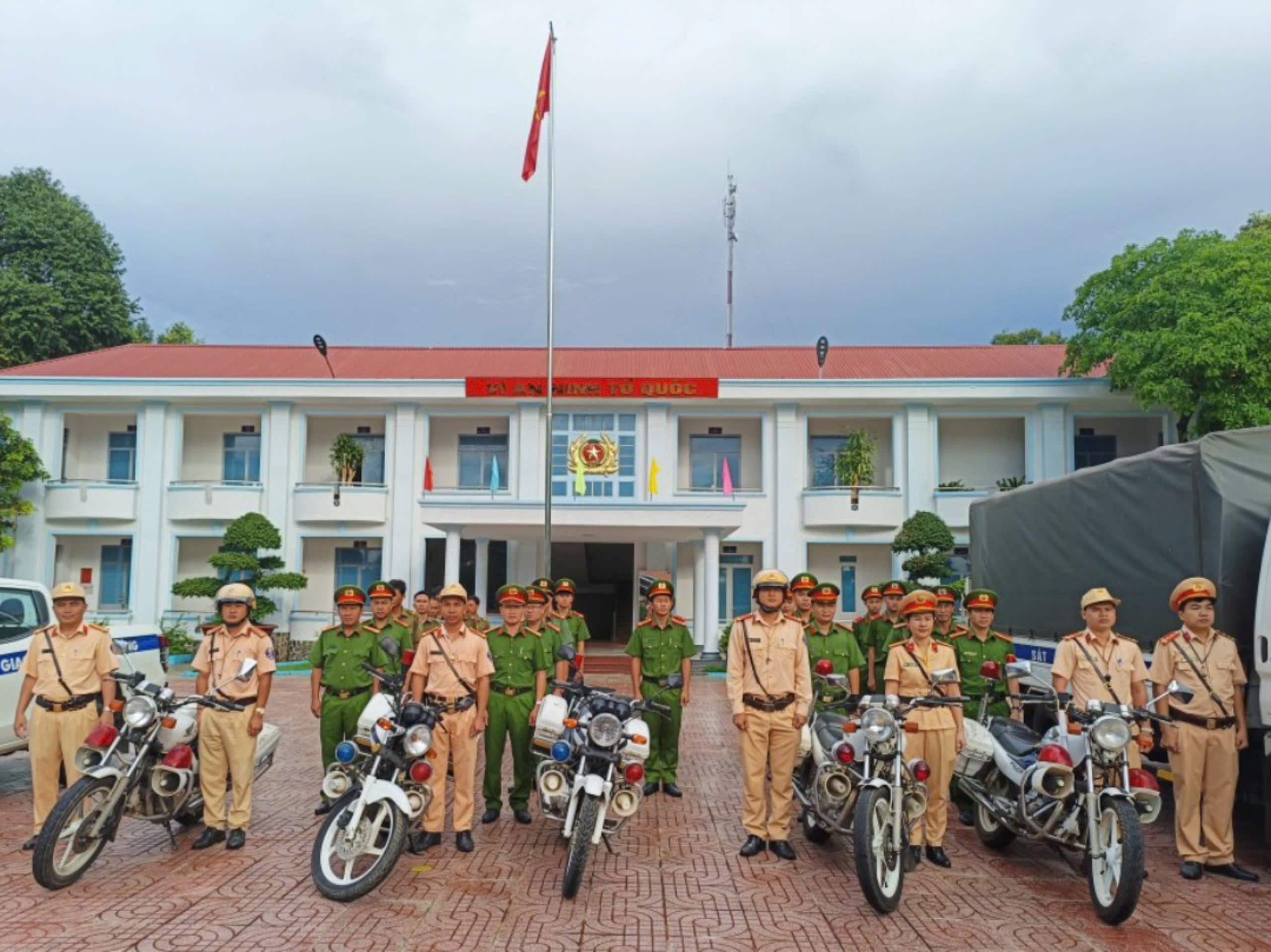 Cán bộ, chiến sỹ công an huyện Đồng Phú chuẩn bị lên đường thực hiện nhiệm vụ bảo đảm ATGT trên địa bàn