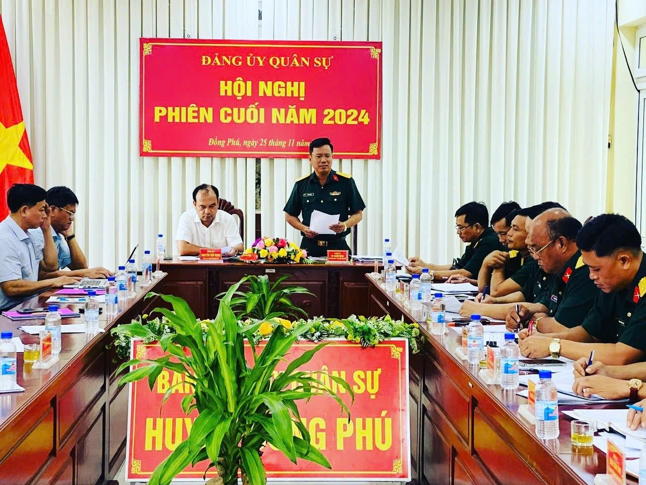 Dự hội nghị có Thượng tá Vũ Mạnh Hùng - Phó Chỉ huy trưởng Bộ CHQS tỉnh; Tỉnh ủy viên, Bí thư Huyện ủy, Bí thư Đảng ủy Quân sự huyện Đồng Phú Nguyễn Tấn Hùng; Phó Bí thư Huyện ủy, Chủ tịch UBND huyện Lê Văn Trân cùng các cơ quan trực thuộc Bộ CHQS tỉnh, lãnh đạo các cơ quan xây dựng Đảng của Huyện ủy, Bí thư Đảng ủy, Bí thư chi bộ Quân sự các xã, thị trấn.