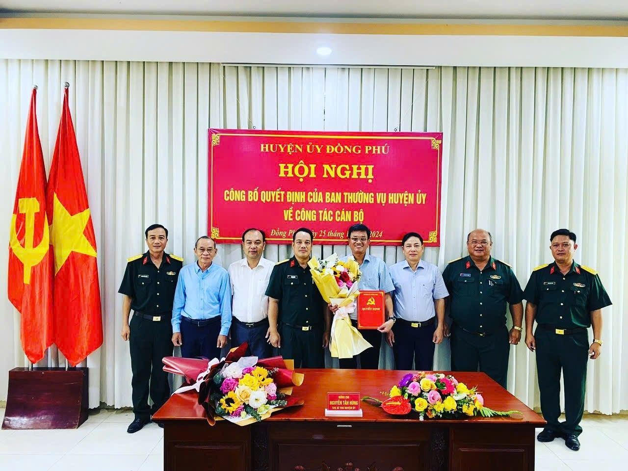 Tại hội nghị, thay mặt Ban Thường vụ Huyện ủy Đồng Phú, đồng chí Nguyễn Tấn Hùng - Bí thư Huyện ủy công bố Quyết định chỉ định đồng chí Lê Văn Trân, Phó Bí thư Huyện ủy, Chủ tịch UBND huyện tham gia Đảng ủy Quân sự huyện nhiệm kỳ 2020-2025.