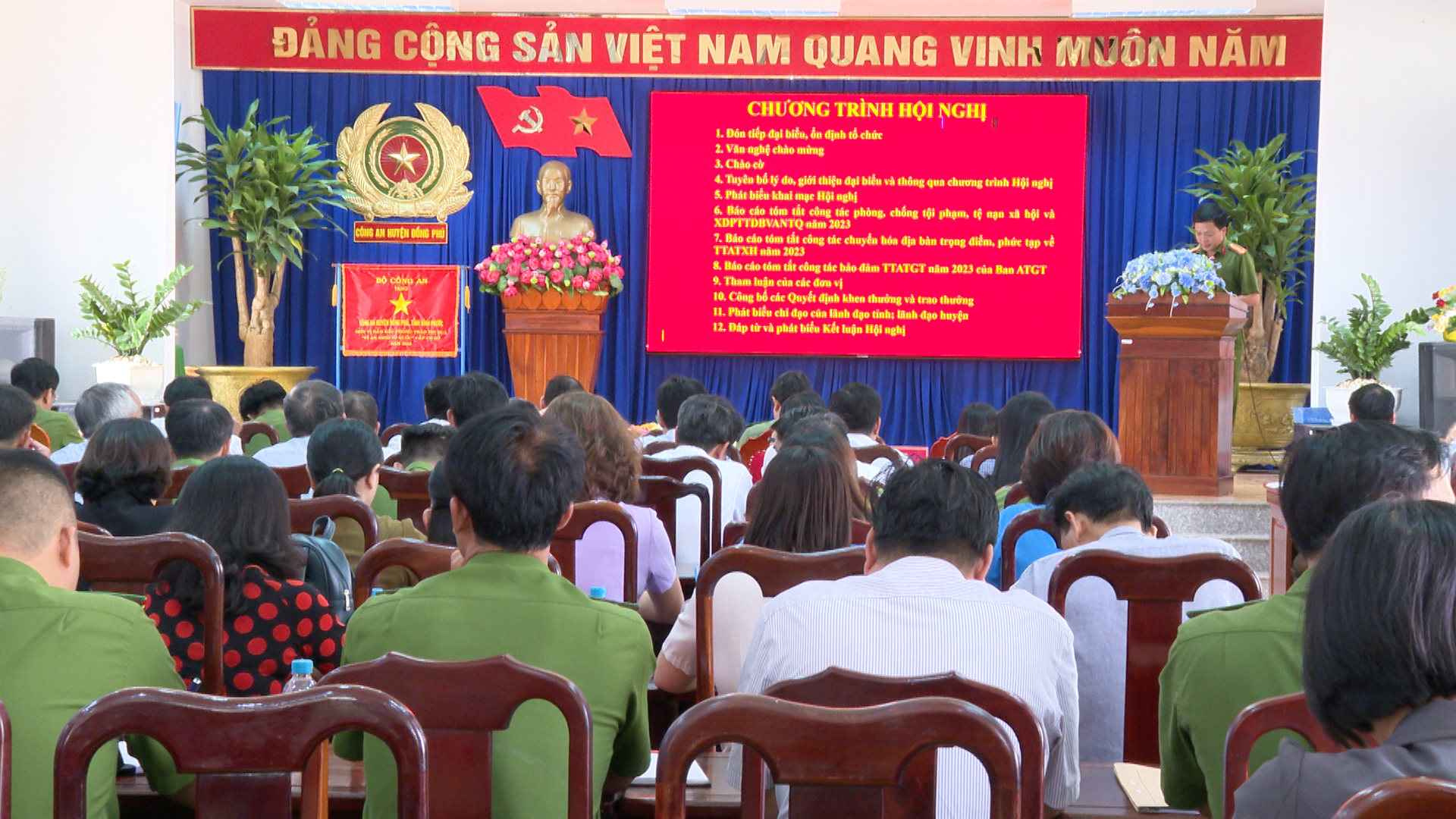 Hội nghị đã nghe các tham luận về kinh nghiệm phòng, chống tội phạm, tệ nạn xã hội, an toàn giao thông, công tác tuyên truyền tại trường học, công tác hoà giải cơ sở. Đồng thời thảo luận những nhiệm vụ trọng tâm cần thực hiện trong năm 2024.