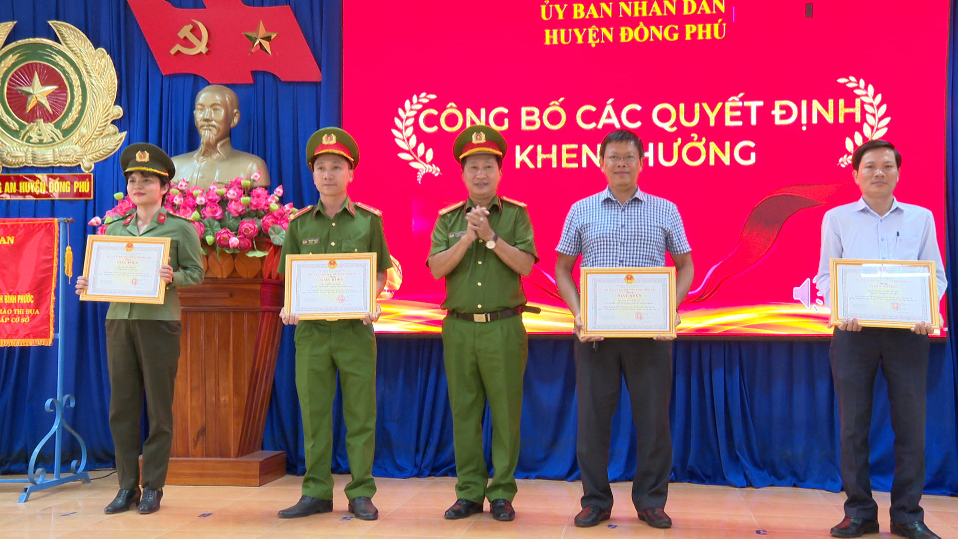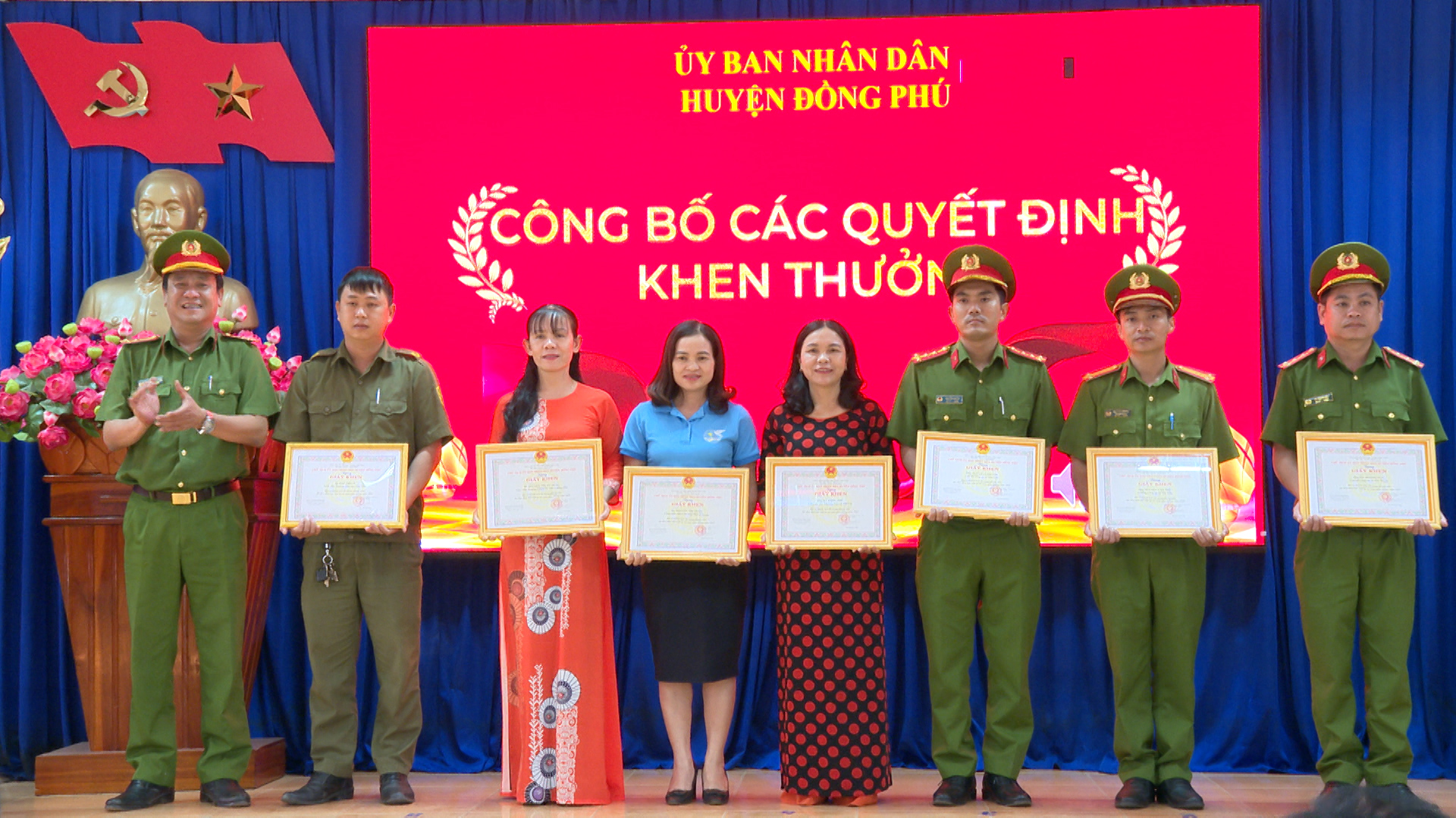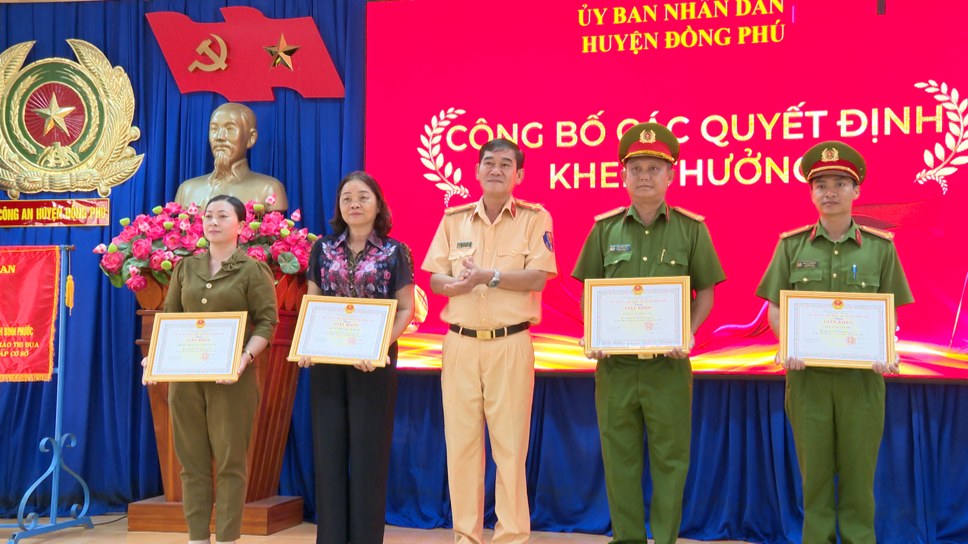 Dịp này, UBND huyện Đồng Phú đã tặng giấy khen cho 3 tập thể, 6 cá nhân có thành tích tốt trong phong trào thi đua thực hiện công tác phòng, chống tối phạm, tệ nạn xã hội, công tác chuyển hoá địa bàn; 5 tập thể, 10 cá nhân có thành tích tốt trong công tác bảo đảm trật tự an toàn giao thông; 3 tập thể, 5 cá nhân có thành tích tốt trong phong trào toàn dân bảo vệ an ninh tổ quốc năm 2023.