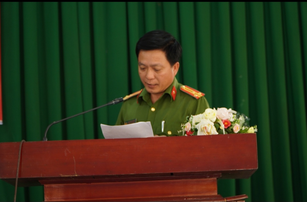 Thượng tá Nguyễn Đức Minh, Trưởng Công an huyện phát biểu tại buổi lễ