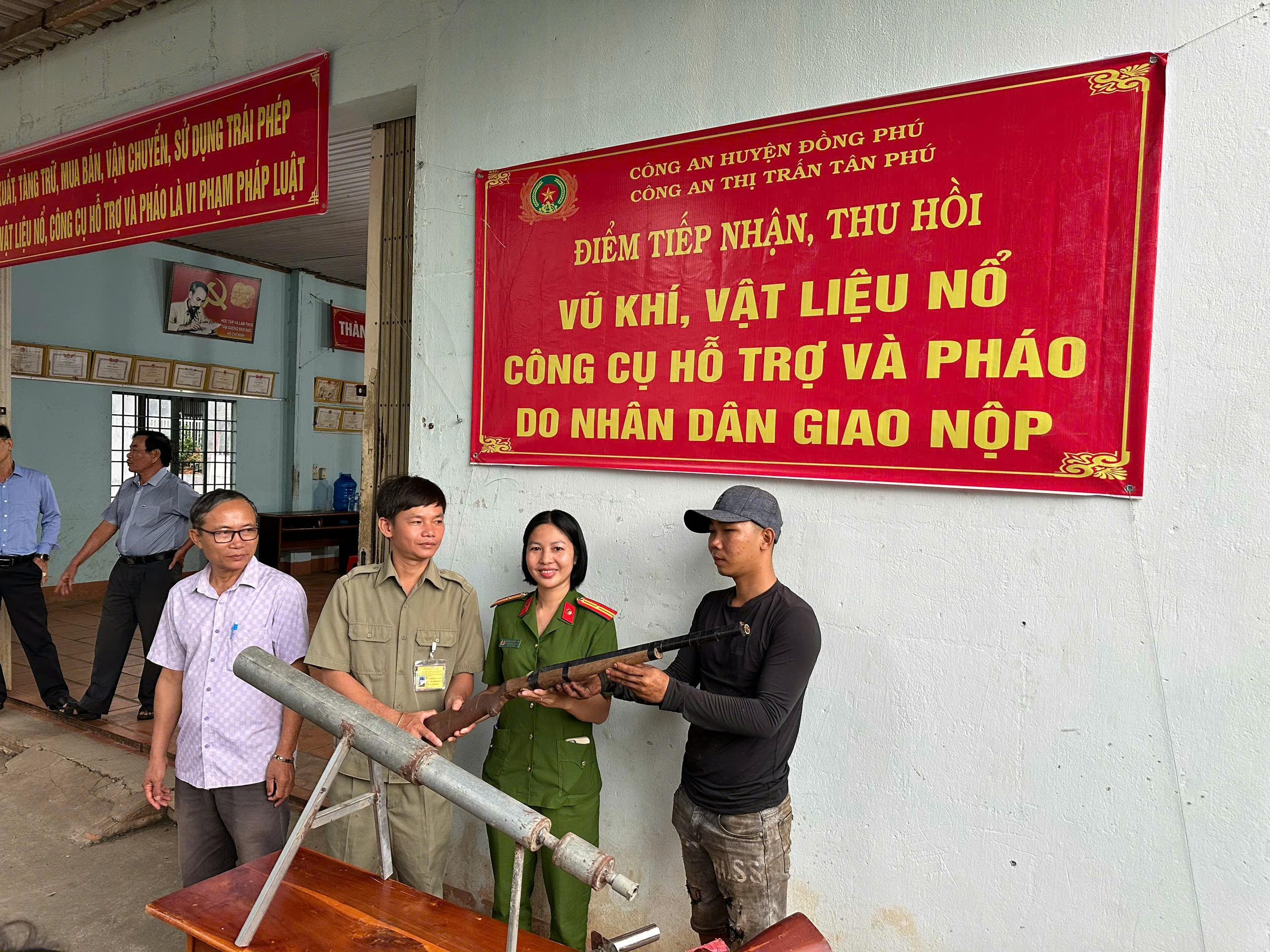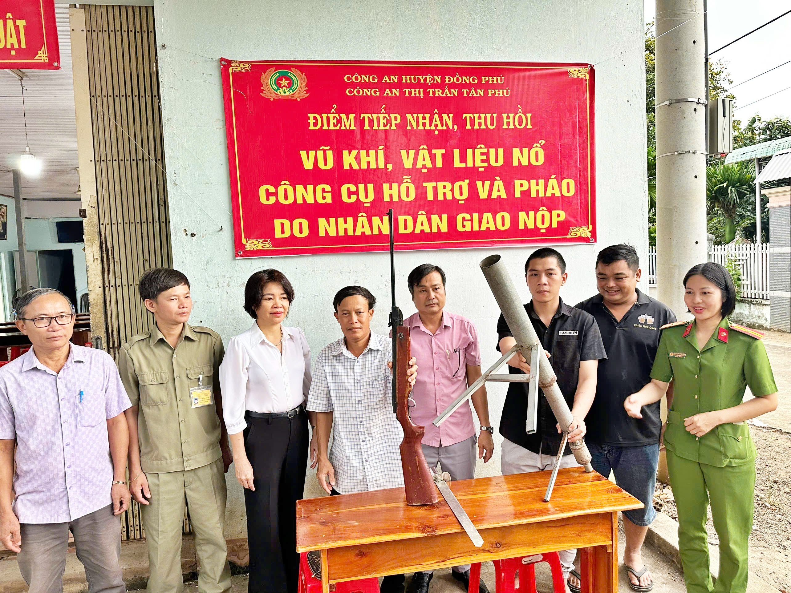 Tiếp đó, UBND thị trấn Tân Phú đã phát động ra quân “ngày hội toàn dân giao nộp vũ khí, vật liệu nổ, công cụ hỗ trợ và pháo” từ ngày 01/11/2024 đến ngày 28/02/2025. Qua đây, lãnh đạo thị trấn kêu gọi tất cả người dân trên địa bàn tích cực tham gia, tìm hiểu quy định của pháp luật về quản lý, sử dụng vũ khí, vật liệu nổ, công cụ hỗ trợ; tự giác giao nộp các loại vũ khí, vật liệu nổ, công cụ hỗ trợ và pháo tại các điểm tiếp nhận, thu gom của lực lượng công an. Các cơ quan, ban, ngành, đoàn thể của thị trấn và ban điều hành các khu dân cư đẩy mạnh vận động người dân tham gia tố giác, cung cấp thông tin, các vụ việc, hiện tượng liên quan chế tạo, sản xuất, mua bán, vận chuyển, tàng trữ, sử dụng trái phép vũ khí, vật liệu nổ, công cụ hỗ trợ và pháo nhằm giúp lực lượng chức năng thu hồi, đấu tranh, xử lý.