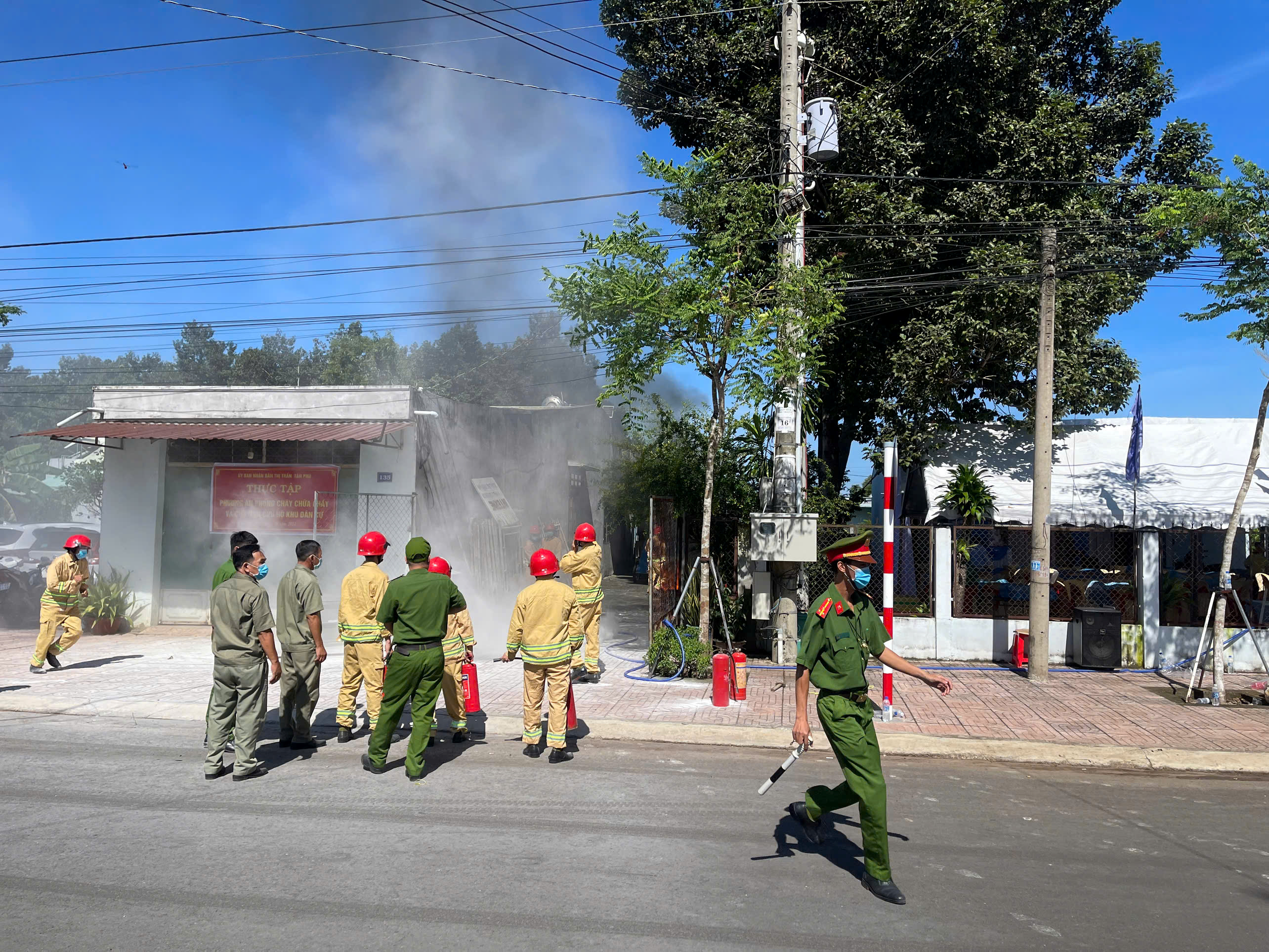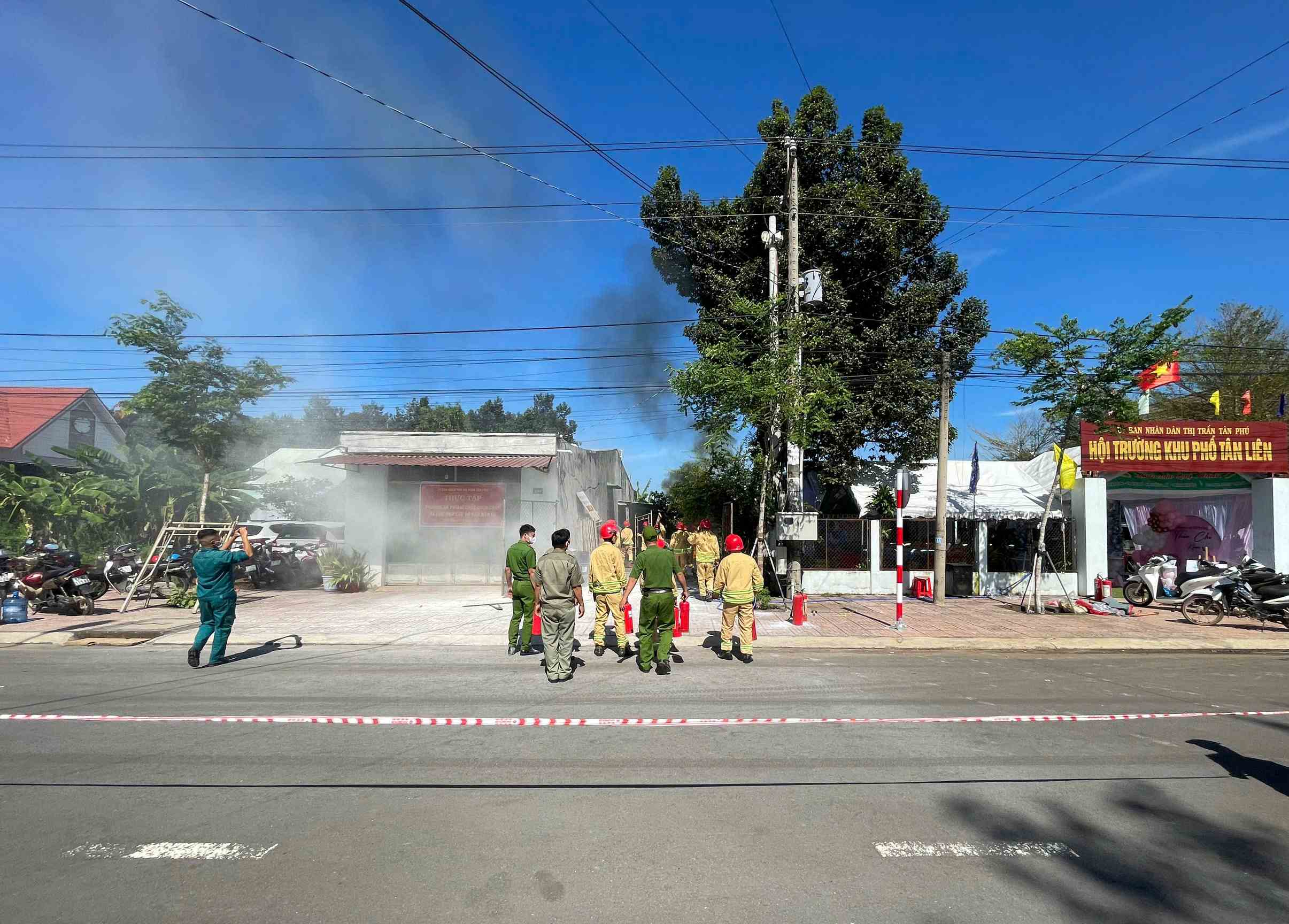 Các lực lượng xử lý tình huống giả định xảy ra cháy do chập điện tại một nhà dân. Thời điểm này, cửa bị khóa, trong nhà có 1 người lớn, do tâm lý hoảng loạn nên người này không tìm được chìa khóa để mở cửa để thoát ra bên ngoài. Diện tích đám cháy tại thời điểm phát hiện khoảng 3m2. Mặc dù đã sử dụng bình chữa cháy phun vào đám cháy, tuy nhiên do đám cháy đã phát triển lớn nên không thể khống chế được, chủ hộ đã hô hoán thông tin cho các hộ dân xung quanh biết để hỗ trợ chữa cháy, cứu nạn, cứu hộ.