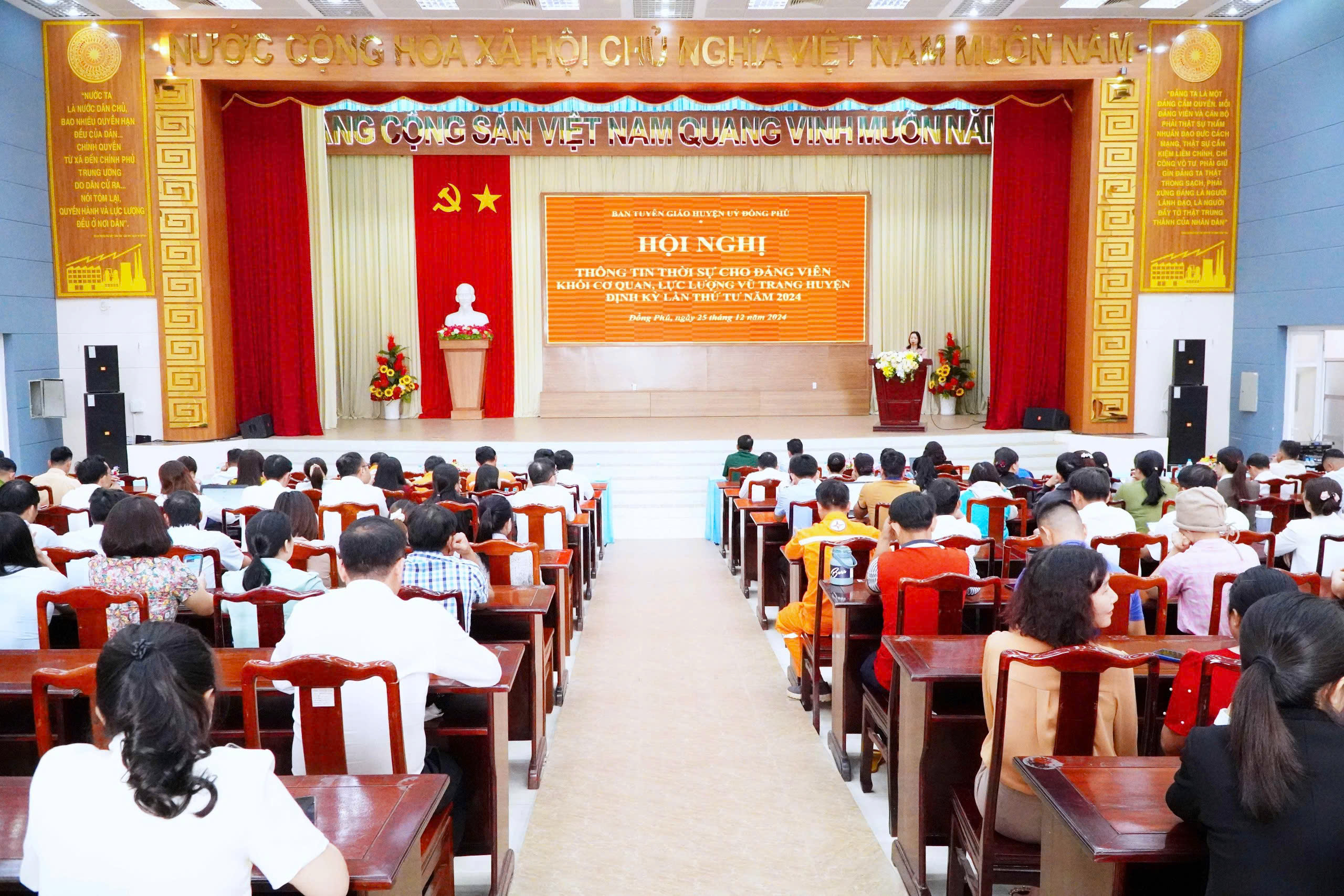 Sáng 25-12, Huyện uỷ Đồng Phú tổ chức hội nghị thông tin thời sự lần thứ 4 năm 2024 cho gần 200 đảng viên khối cơ quan, lực lượng vũ trang huyện.