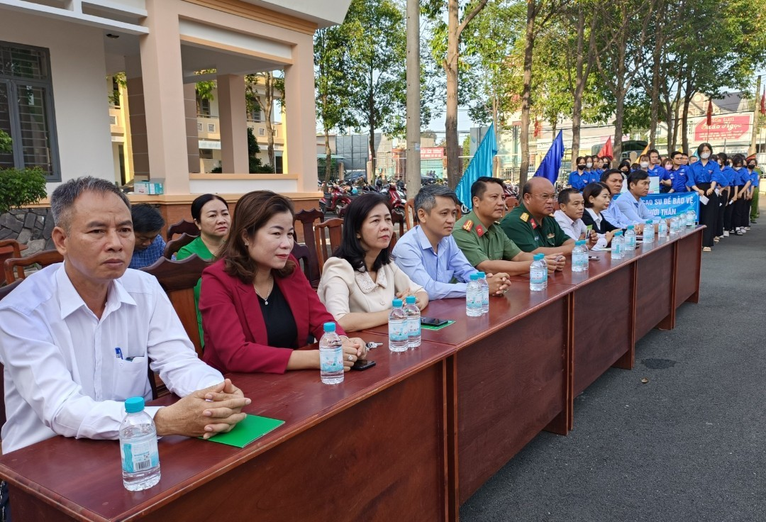 Ngay sau buổi lễ, đông đảo cán bộ, công chức, viên chức, đoàn viên thanh niên, các em học sinh đã diễu hành trên trục đường ĐT741 nhằm tuyên truyền, vận động mọi người dân cùng chung tay đẩy lùi dịch HIV/AIDS ra khỏi cộng đồng.