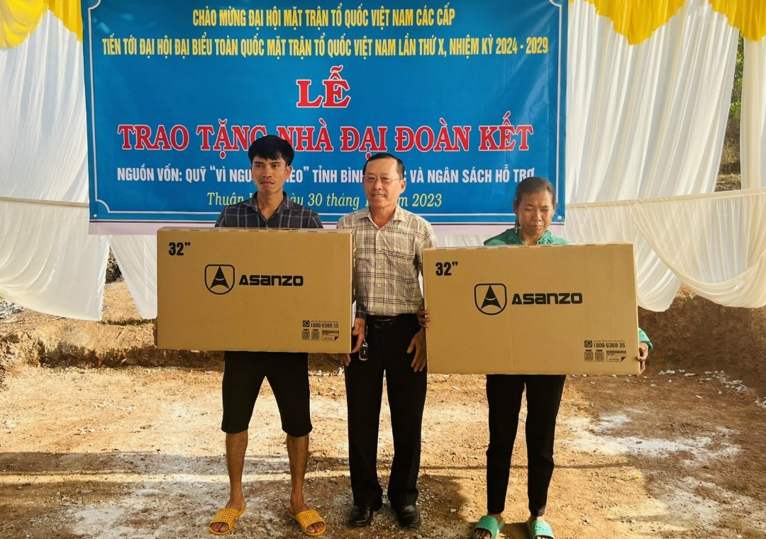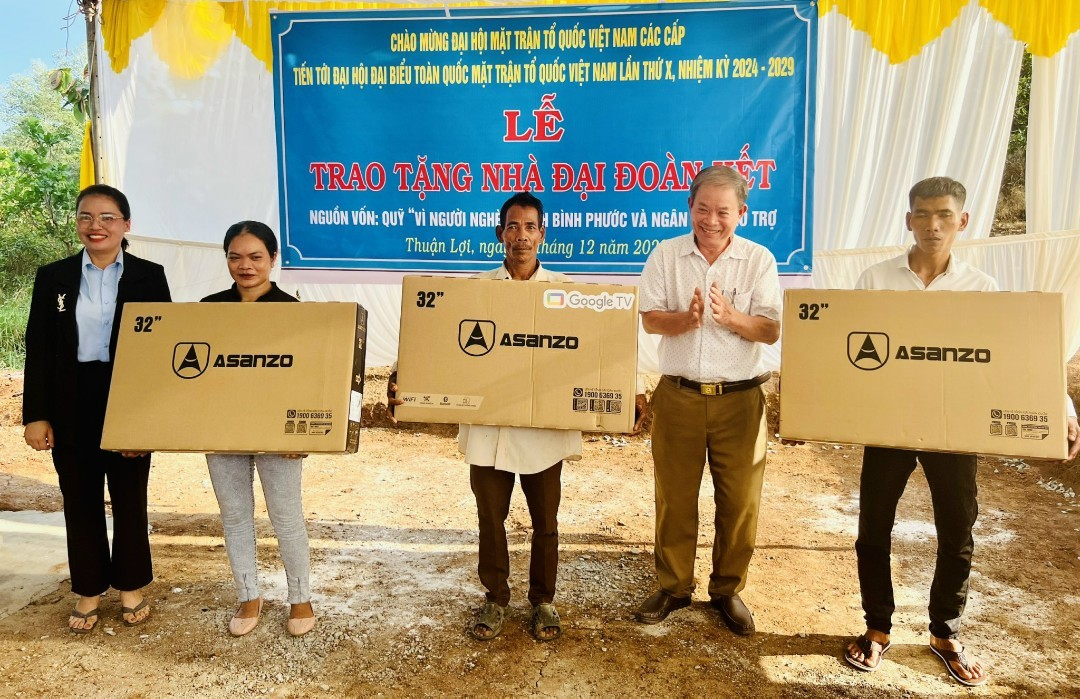 Lãnh đạo huyện Đồng Phú cũng trao tặng 12 ti vi cho 12 gia đình người dân tộc thiểu số có hoàn cảnh khó khăn, trong đó có 9 gia đình ngụ ấp Thuận Tiến và 3 gia đình ngụ ấp Thuận Tân, tổng trị giá 48 triệu đồng.