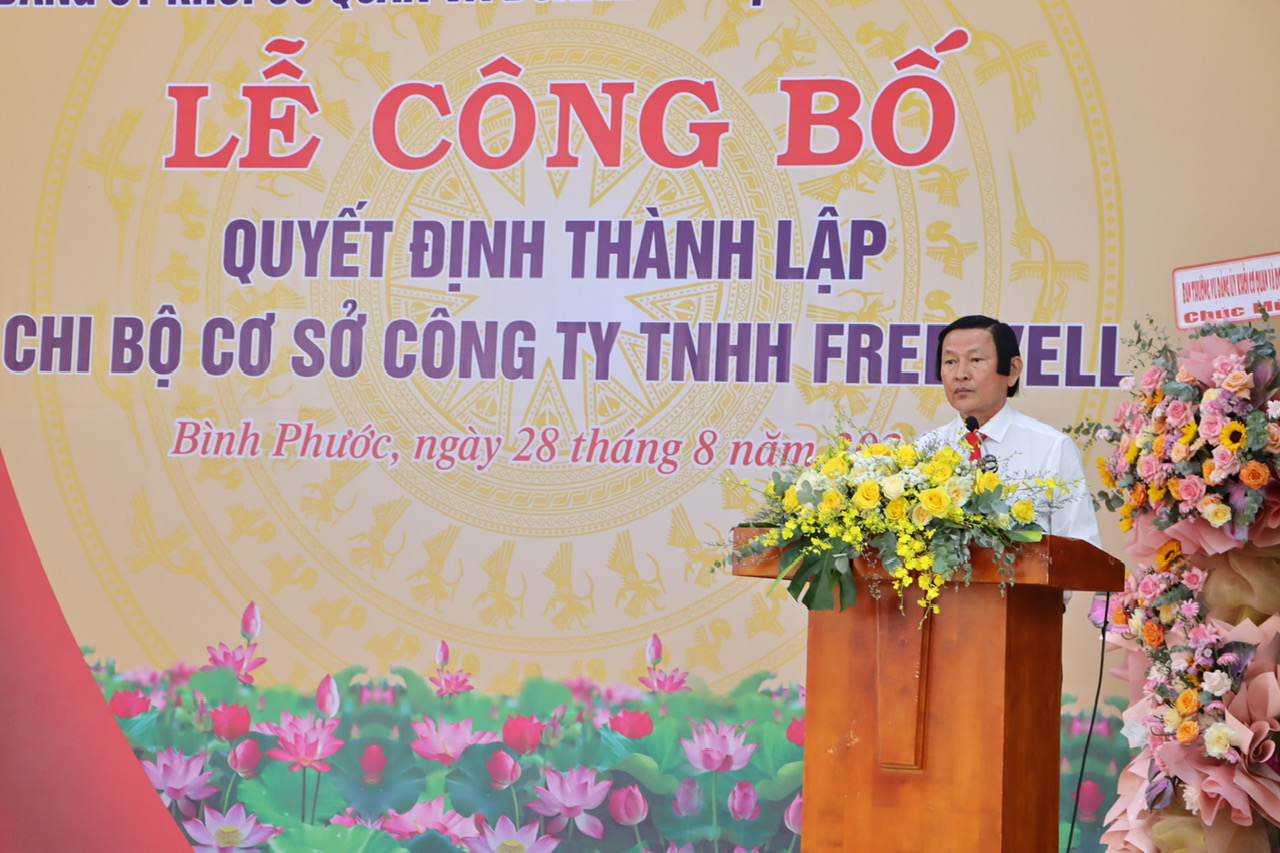 Công ty TNHH Freewell chính thức hoạt động tại tỉnh Bình Phước vào năm 2011. Đây là doanh nghiệp có vốn đầu tư nước ngoài, chuyên sản xuất lĩnh vực giày da, xuất khẩu sang các nước châu Âu. Công ty đang giải quyết việc làm cho hơn 6.000 lao động. Đại diện lãnh đạo công ty cam kết tạo điều kiện để chi bộ hoạt động theo quy định của Điều lệ Đảng, nhằm phát huy vai trò, trách nhiệm, thực hiện tốt chức năng, nhiệm vụ của tổ chức đảng trong doanh nghiệp tư nhân.