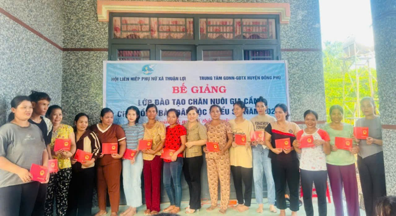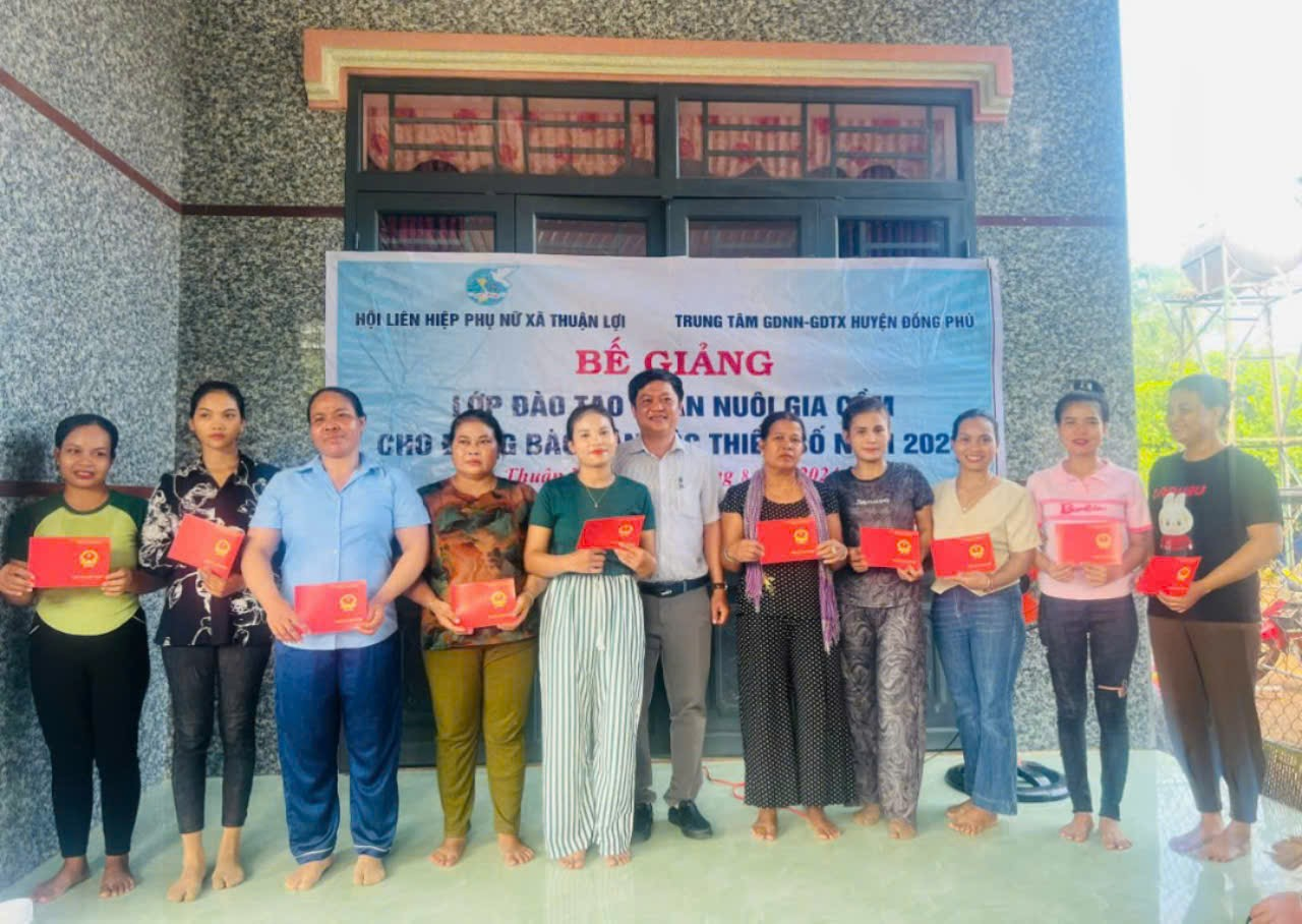 Chiều 23-8-2024, tại ấp Thuận Tiến, xã Thuận Lợi, Trung tâm GDNN-GDTX huyện Đồng Phú đã tổ chức Lễ bế giảng lớp Kỹ thuật chăn nuôi gia cầm.
