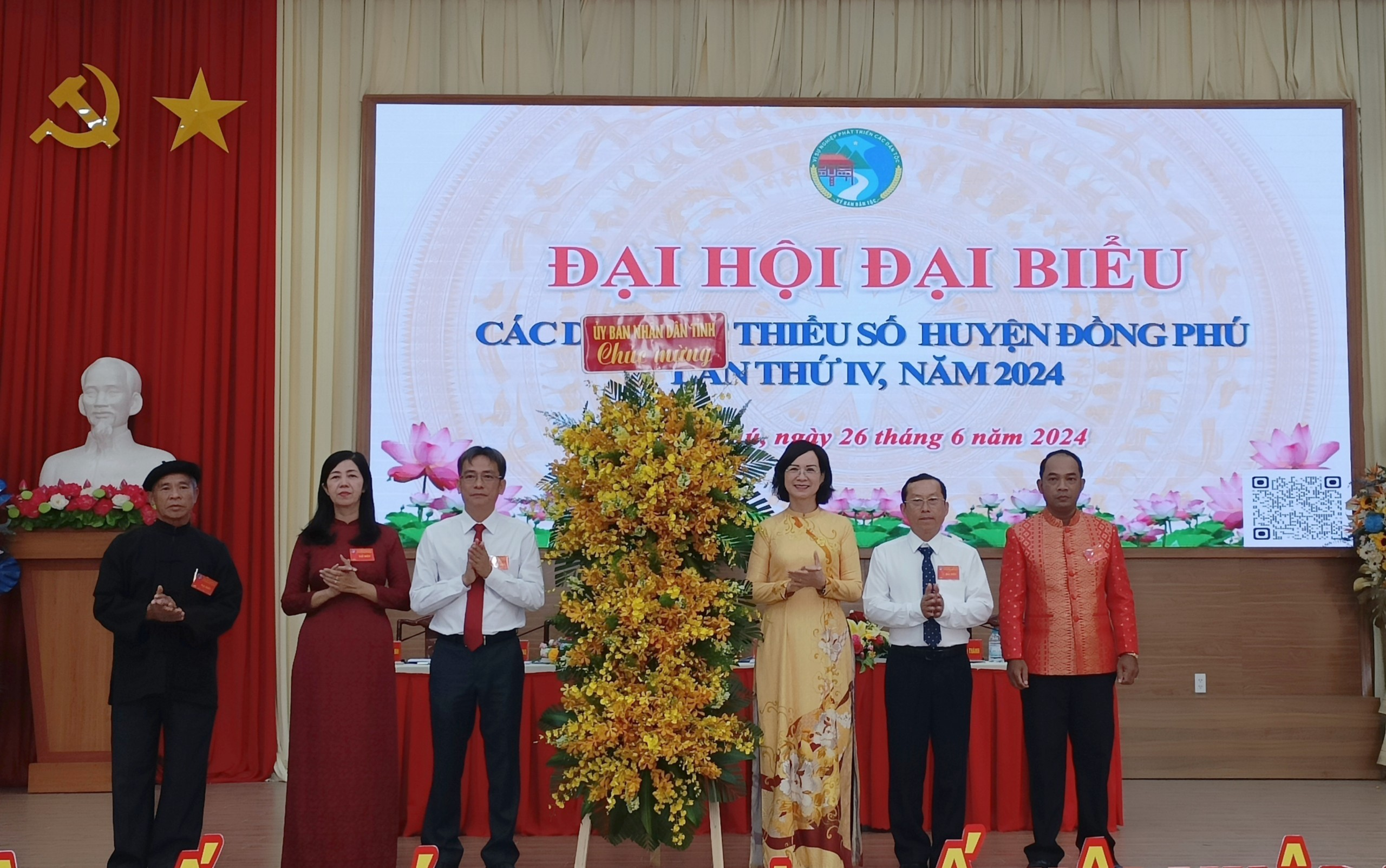 Phát biểu chỉ đạo, Ủy viên Ban Thường vụ Tỉnh ủy, Phó Chủ tịch UBND tỉnh Trần Tuyết Minh đánh giá cao kết quả đã đạt được trong nhiệm kỳ qua. Thời gian tới, huyện Đồng Phú cần tiếp tục triển khai, thực hiện tốt hơn nữa các chính sách dân tộc, công tác dân tộc. Huy động các nguồn lực để đầu tư, nâng cao đời sống vật chất và tinh thần cho đồng bào DTTS. Đồng thời, đẩy mạnh công tác tuyên truyền, vận động người dân ứng dụng khoa học kỹ thuật vào sản xuất để giảm nghèo bền vững.