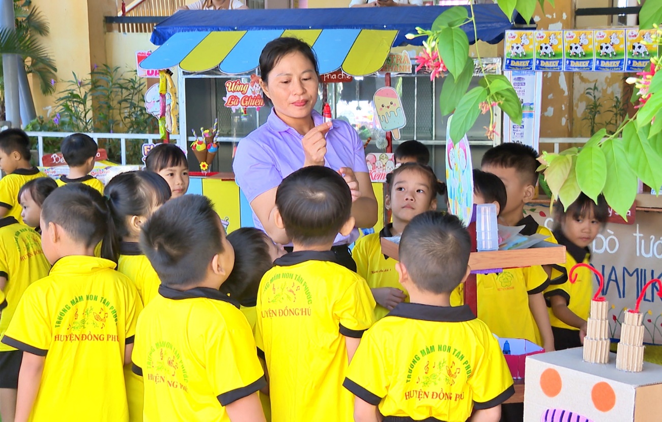 Trường Mầm non Tân Phước được đầu tư cơ sở vật chất khang trang, các góc chơi được trang trí bắt mắt